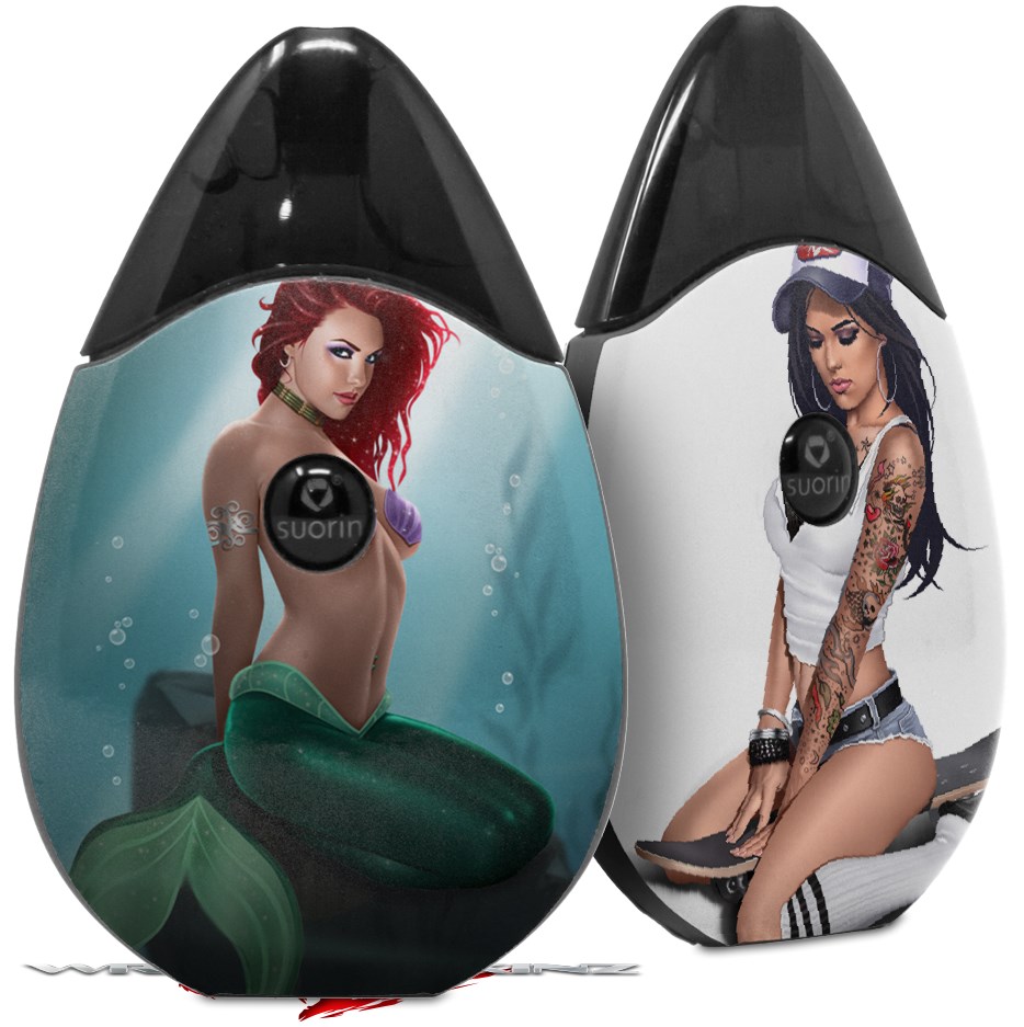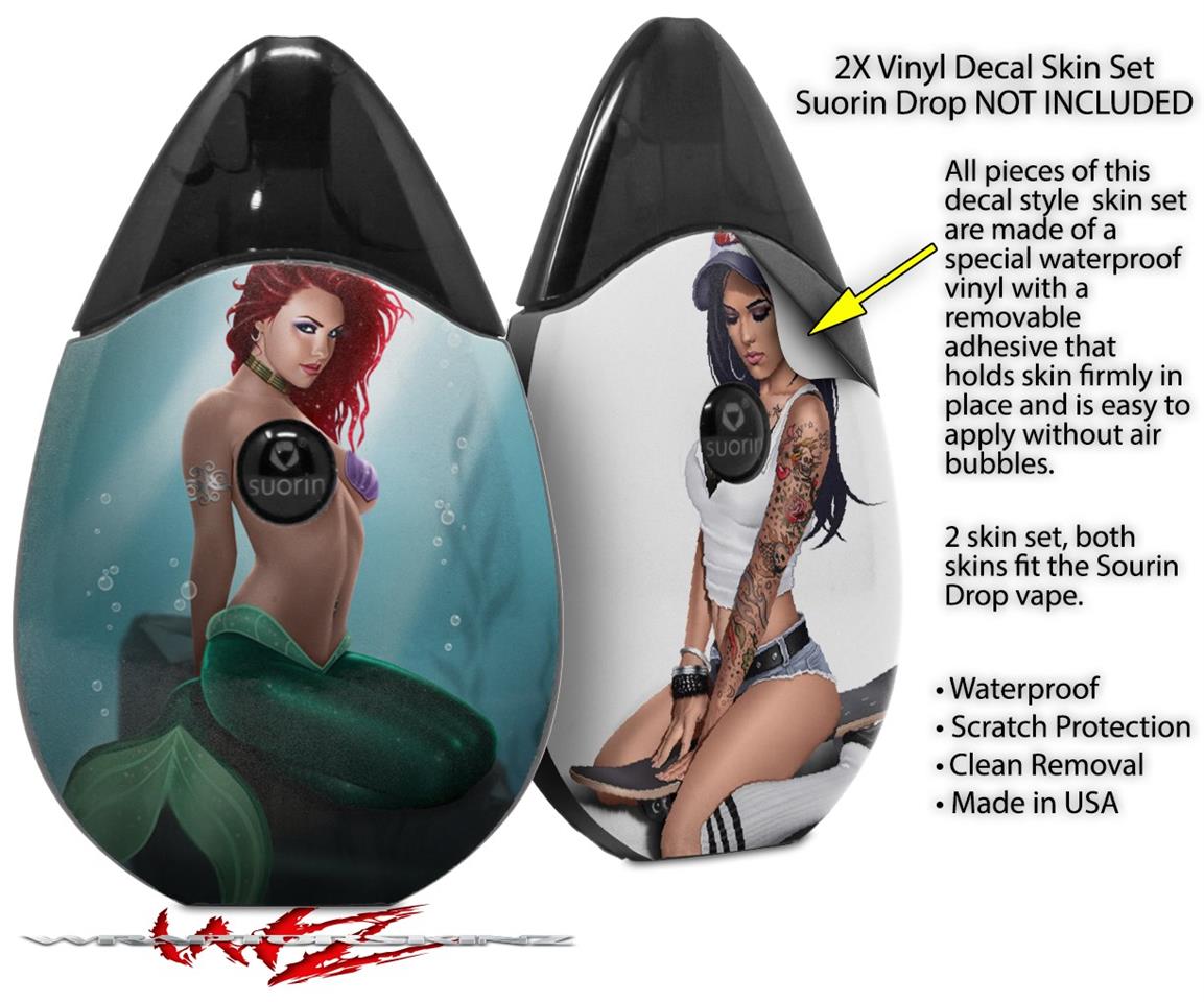Skin Decal Wrap 2 Pack compatible with Suorin Drop Mermaid Sexy Pinup Girl VAPE NOT INCLUDED
