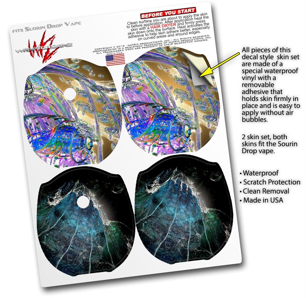 WraptorSkinz® skin wraps compatible with Suorin Drop Vape are printed using superb photo quality designs and vibrant colors printed with special fade resistant inks that last even in direct sun for years. WraptorSkinz are a composite of two layers of commercial grade materials. The bottom layer is a soft, flexible vinyl with a special removable adhesive that is easily positioned, applied without air bubbles. Next, we print the bottom layer with UV protected, fade resistant inks that deliver superb photo quality designs in vibrant colors. Finally, we bond a professional grade laminate over the entire skin adding a glossy protective finish. This product is not affiliated with or endorsed by Suorin.