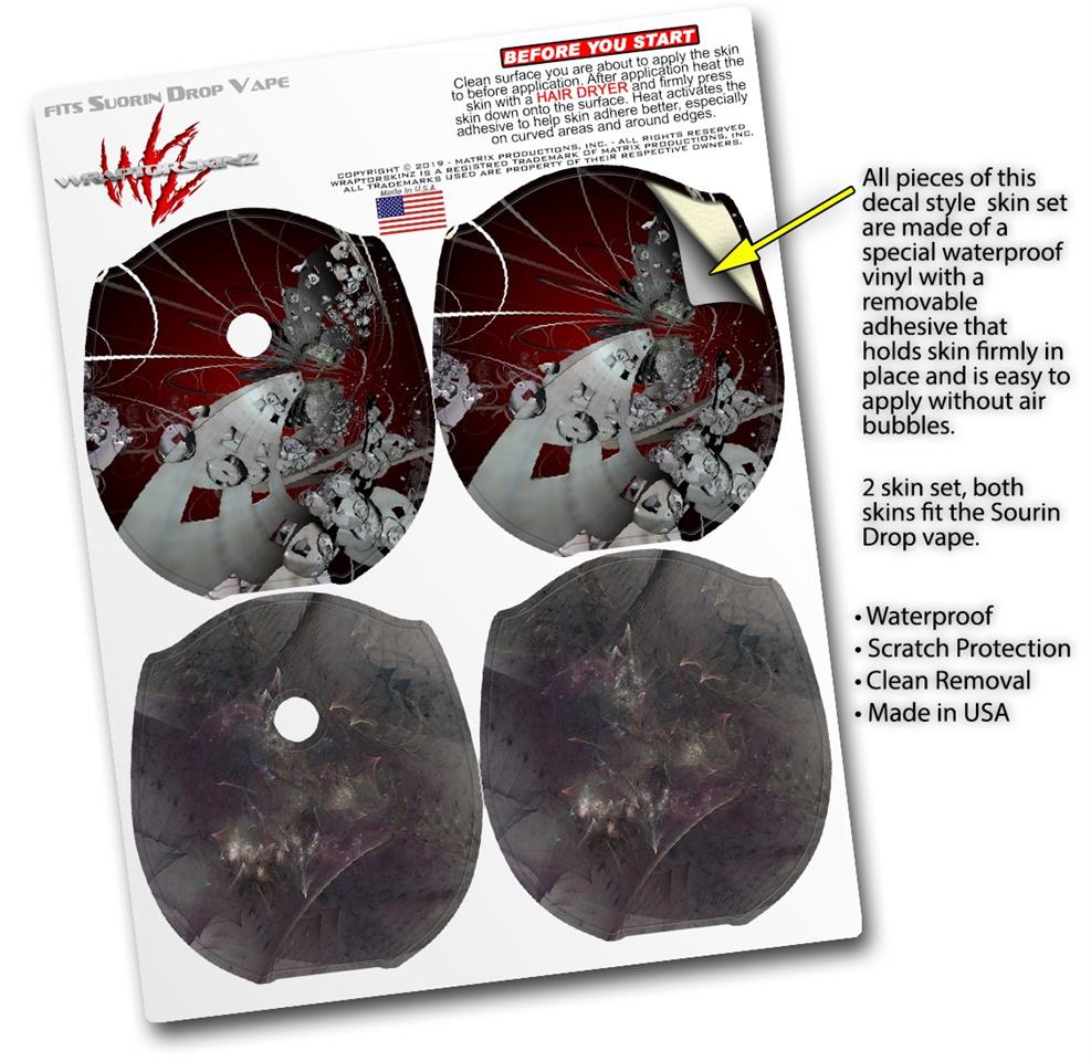 WraptorSkinz® skin wraps compatible with Suorin Drop Vape are printed using superb photo quality designs and vibrant colors printed with special fade resistant inks that last even in direct sun for years. WraptorSkinz are a composite of two layers of commercial grade materials. The bottom layer is a soft, flexible vinyl with a special removable adhesive that is easily positioned, applied without air bubbles. Next, we print the bottom layer with UV protected, fade resistant inks that deliver superb photo quality designs in vibrant colors. Finally, we bond a professional grade laminate over the entire skin adding a glossy protective finish. This product is not affiliated with or endorsed by Suorin.