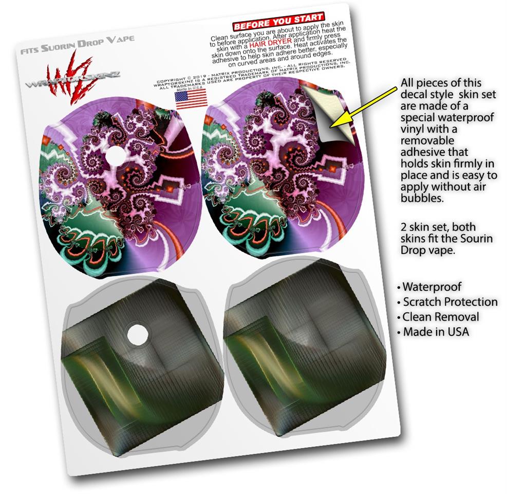 WraptorSkinz® skin wraps compatible with Suorin Drop Vape are printed using superb photo quality designs and vibrant colors printed with special fade resistant inks that last even in direct sun for years. WraptorSkinz are a composite of two layers of commercial grade materials. The bottom layer is a soft, flexible vinyl with a special removable adhesive that is easily positioned, applied without air bubbles. Next, we print the bottom layer with UV protected, fade resistant inks that deliver superb photo quality designs in vibrant colors. Finally, we bond a professional grade laminate over the entire skin adding a glossy protective finish. This product is not affiliated with or endorsed by Suorin.
