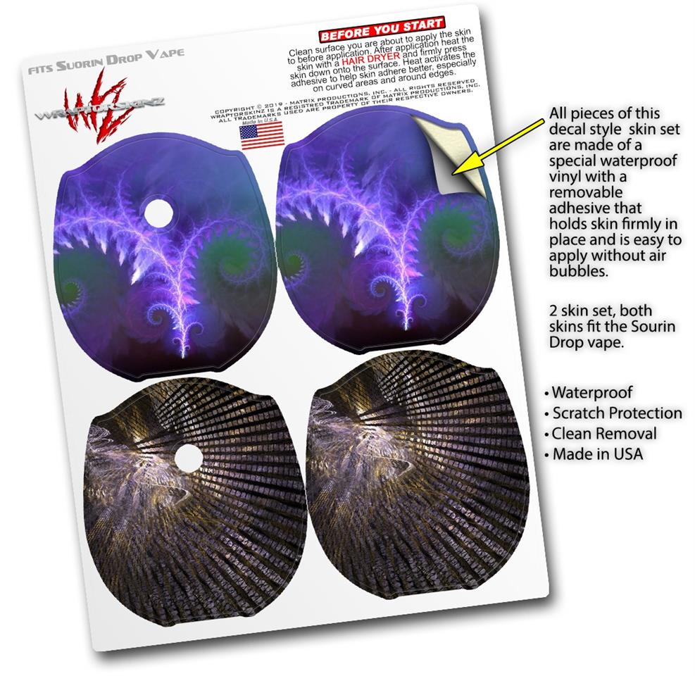 WraptorSkinz® skin wraps compatible with Suorin Drop Vape are printed using superb photo quality designs and vibrant colors printed with special fade resistant inks that last even in direct sun for years. WraptorSkinz are a composite of two layers of commercial grade materials. The bottom layer is a soft, flexible vinyl with a special removable adhesive that is easily positioned, applied without air bubbles. Next, we print the bottom layer with UV protected, fade resistant inks that deliver superb photo quality designs in vibrant colors. Finally, we bond a professional grade laminate over the entire skin adding a glossy protective finish. This product is not affiliated with or endorsed by Suorin.