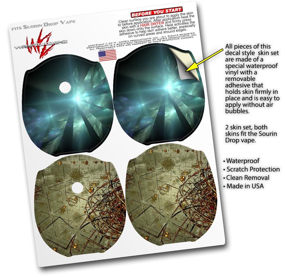 WraptorSkinz® skin wraps compatible with Suorin Drop Vape are printed using superb photo quality designs and vibrant colors printed with special fade resistant inks that last even in direct sun for years. WraptorSkinz are a composite of two layers of commercial grade materials. The bottom layer is a soft, flexible vinyl with a special removable adhesive that is easily positioned, applied without air bubbles. Next, we print the bottom layer with UV protected, fade resistant inks that deliver superb photo quality designs in vibrant colors. Finally, we bond a professional grade laminate over the entire skin adding a glossy protective finish. This product is not affiliated with or endorsed by Suorin.