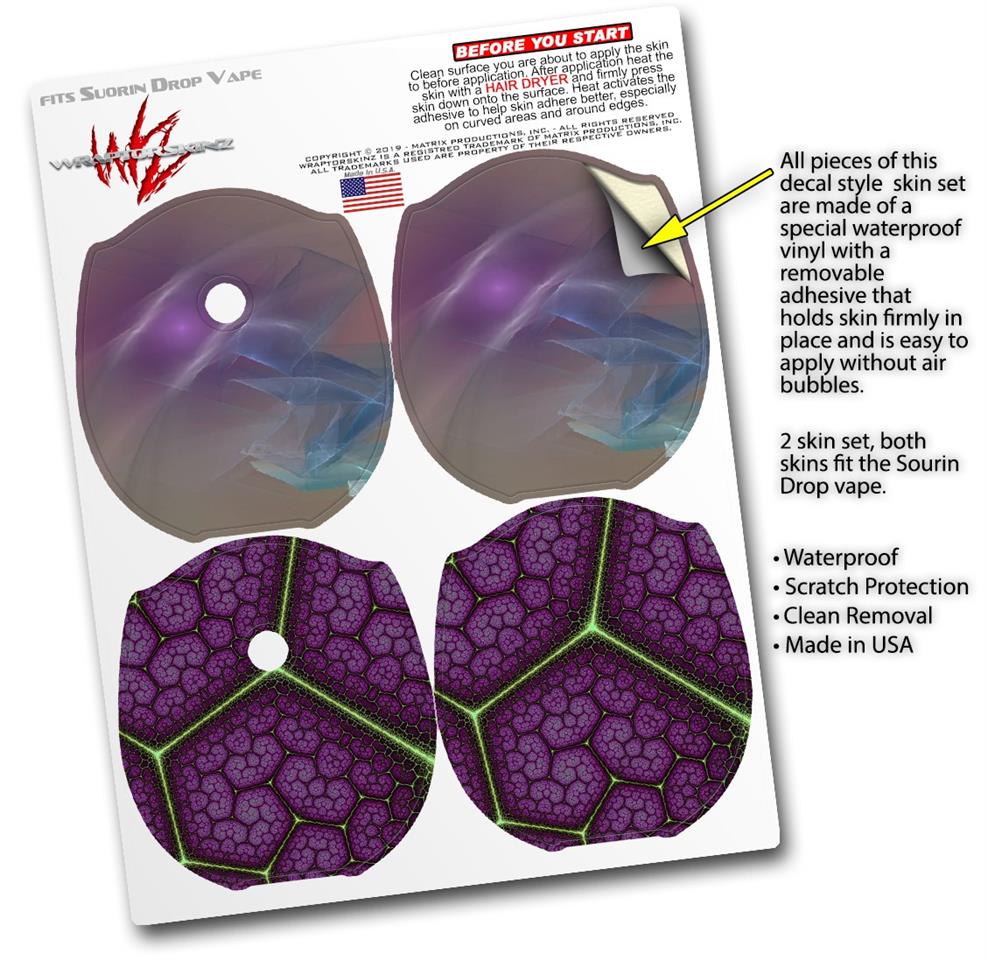 WraptorSkinz® skin wraps compatible with Suorin Drop Vape are printed using superb photo quality designs and vibrant colors printed with special fade resistant inks that last even in direct sun for years. WraptorSkinz are a composite of two layers of commercial grade materials. The bottom layer is a soft, flexible vinyl with a special removable adhesive that is easily positioned, applied without air bubbles. Next, we print the bottom layer with UV protected, fade resistant inks that deliver superb photo quality designs in vibrant colors. Finally, we bond a professional grade laminate over the entire skin adding a glossy protective finish. This product is not affiliated with or endorsed by Suorin.