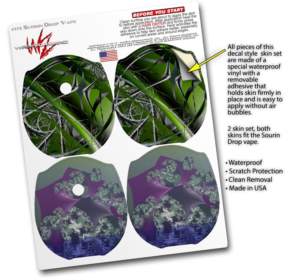 WraptorSkinz® skin wraps compatible with Suorin Drop Vape are printed using superb photo quality designs and vibrant colors printed with special fade resistant inks that last even in direct sun for years. WraptorSkinz are a composite of two layers of commercial grade materials. The bottom layer is a soft, flexible vinyl with a special removable adhesive that is easily positioned, applied without air bubbles. Next, we print the bottom layer with UV protected, fade resistant inks that deliver superb photo quality designs in vibrant colors. Finally, we bond a professional grade laminate over the entire skin adding a glossy protective finish. This product is not affiliated with or endorsed by Suorin.