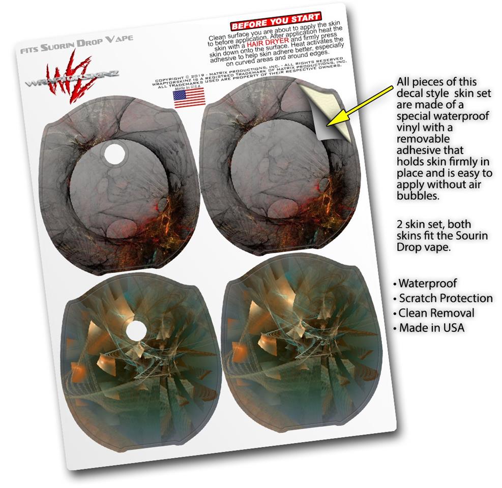 WraptorSkinz® skin wraps compatible with Suorin Drop Vape are printed using superb photo quality designs and vibrant colors printed with special fade resistant inks that last even in direct sun for years. WraptorSkinz are a composite of two layers of commercial grade materials. The bottom layer is a soft, flexible vinyl with a special removable adhesive that is easily positioned, applied without air bubbles. Next, we print the bottom layer with UV protected, fade resistant inks that deliver superb photo quality designs in vibrant colors. Finally, we bond a professional grade laminate over the entire skin adding a glossy protective finish. This product is not affiliated with or endorsed by Suorin.