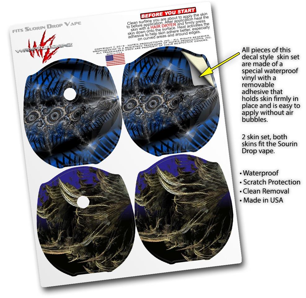WraptorSkinz® skin wraps compatible with Suorin Drop Vape are printed using superb photo quality designs and vibrant colors printed with special fade resistant inks that last even in direct sun for years. WraptorSkinz are a composite of two layers of commercial grade materials. The bottom layer is a soft, flexible vinyl with a special removable adhesive that is easily positioned, applied without air bubbles. Next, we print the bottom layer with UV protected, fade resistant inks that deliver superb photo quality designs in vibrant colors. Finally, we bond a professional grade laminate over the entire skin adding a glossy protective finish. This product is not affiliated with or endorsed by Suorin.