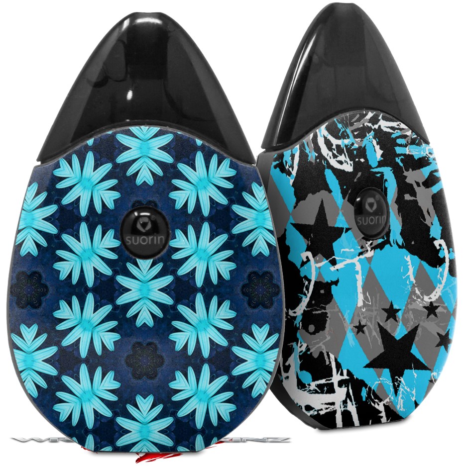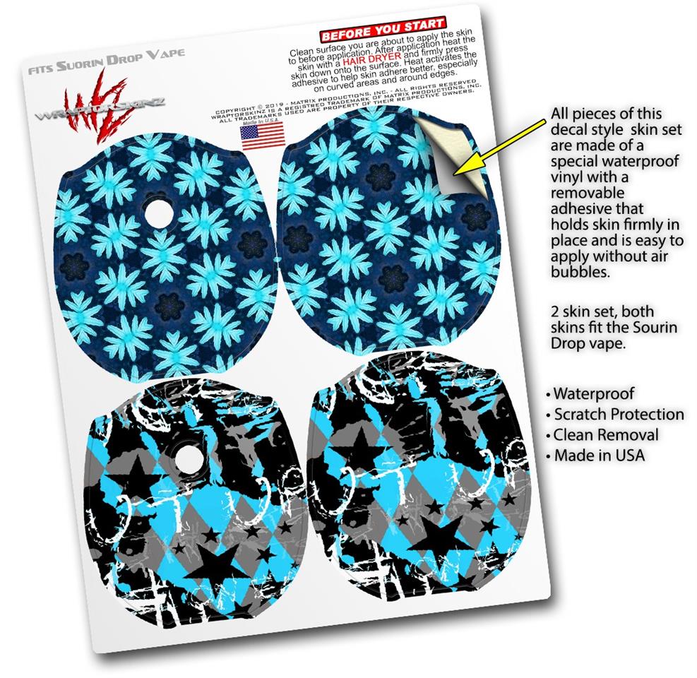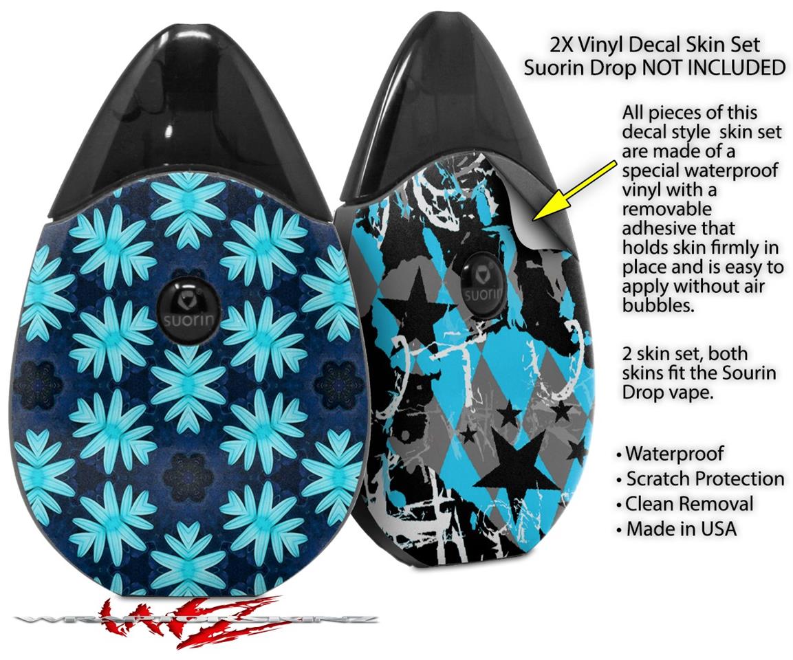 Skin Decal Wrap 2 Pack compatible with Suorin Drop Abstract Floral Blue VAPE NOT INCLUDED