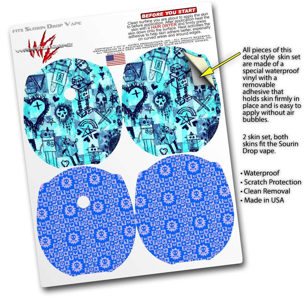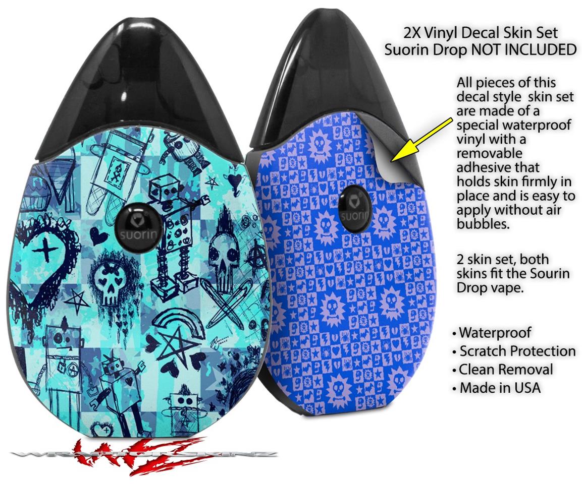 Skin Decal Wrap 2 Pack compatible with Suorin Drop Scene Kid Sketches Blue VAPE NOT INCLUDED