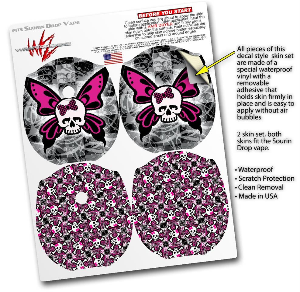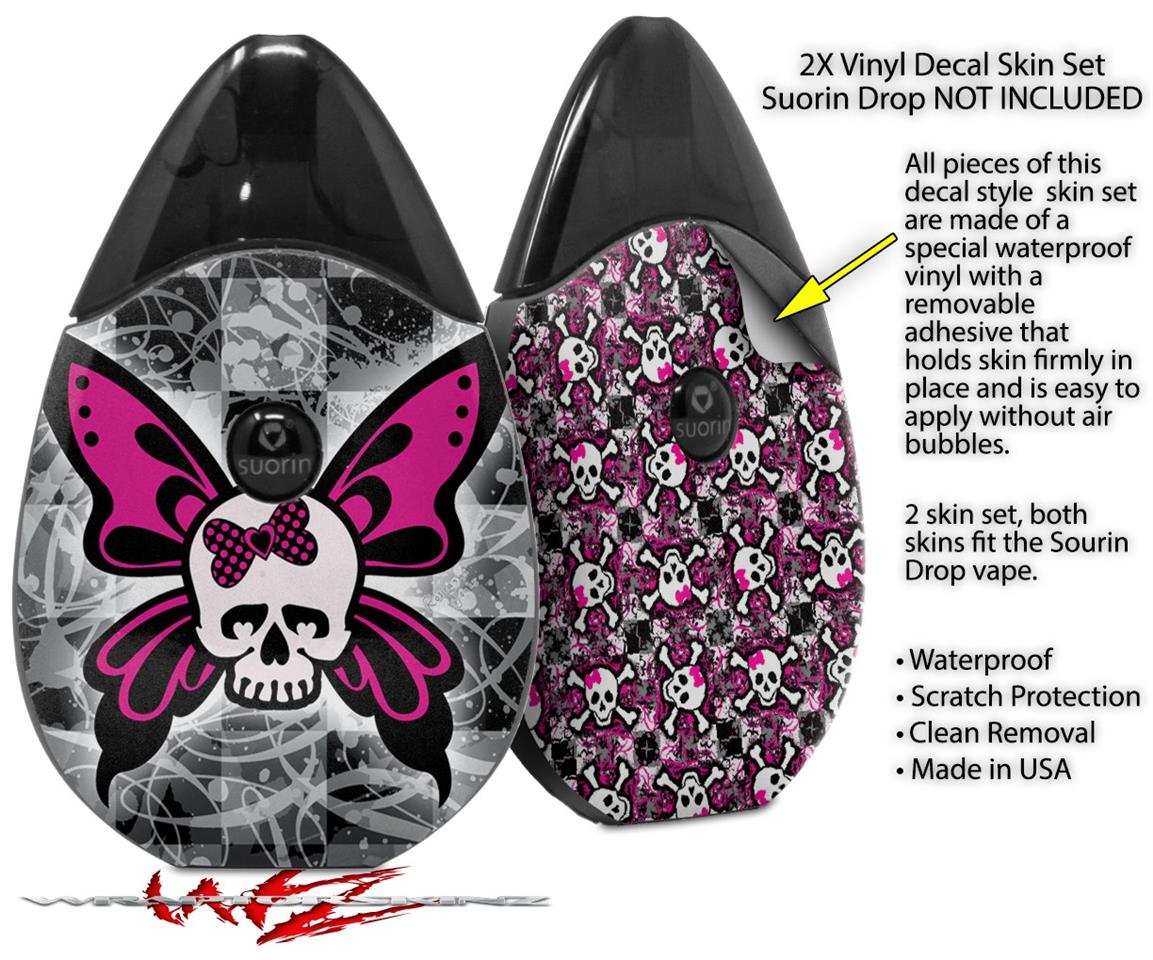 Skin Decal Wrap 2 Pack compatible with Suorin Drop Skull Butterfly VAPE NOT INCLUDED