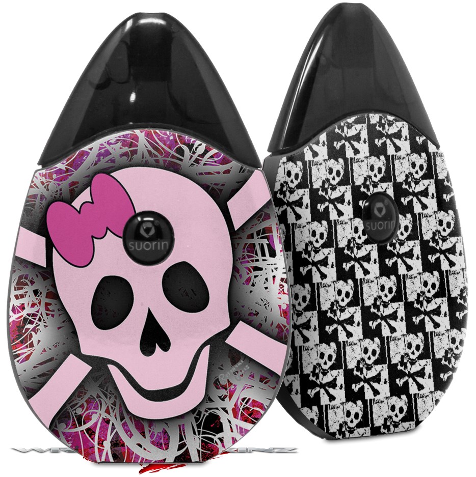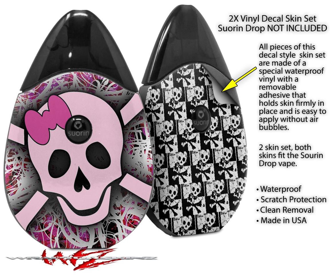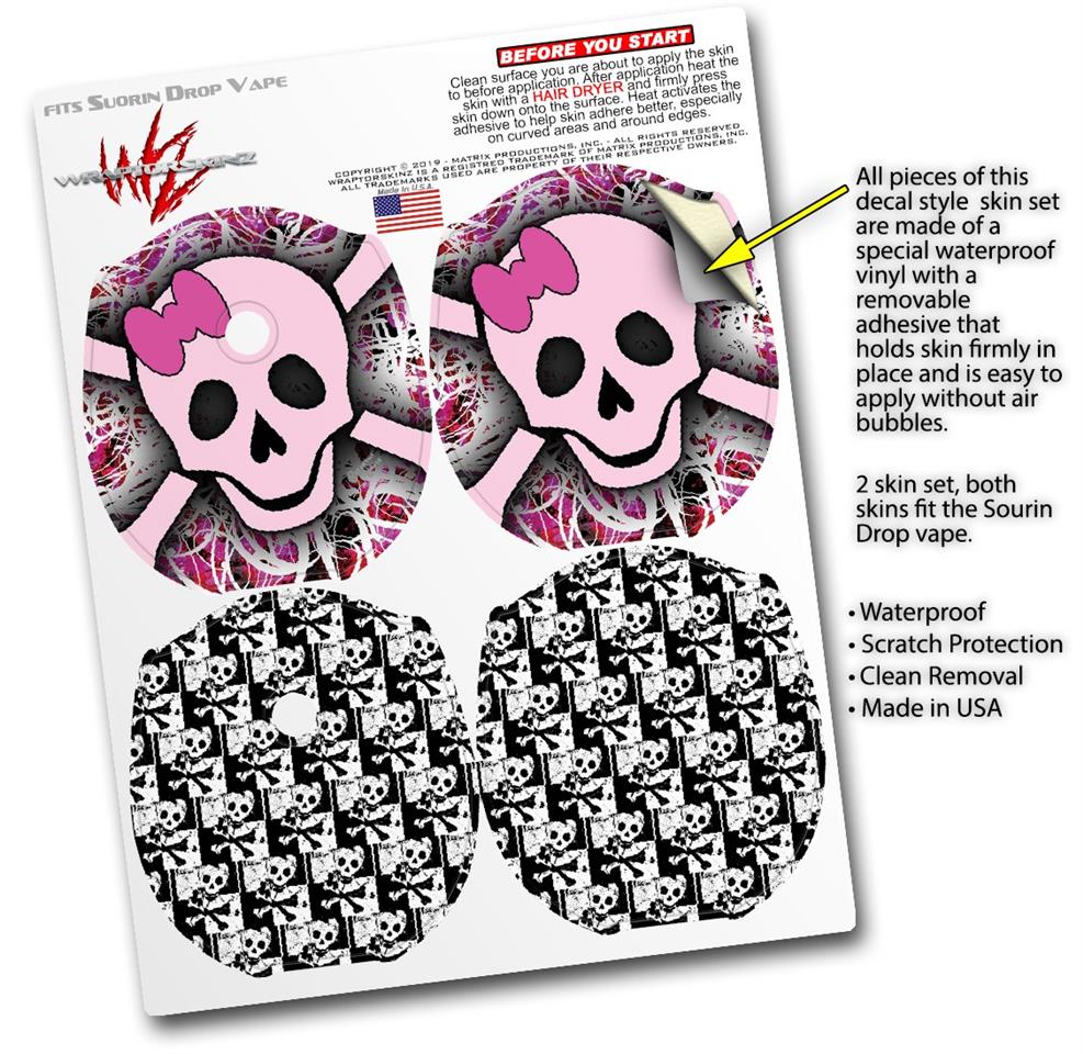 Skin Decal Wrap 2 Pack compatible with Suorin Drop Pink Skull VAPE NOT INCLUDED