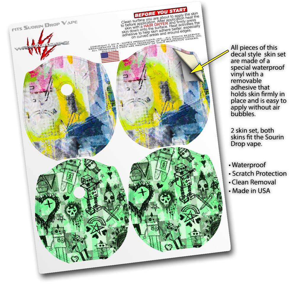 Skin Decal Wrap 2 Pack compatible with Suorin Drop Graffiti Graphic VAPE NOT INCLUDED
