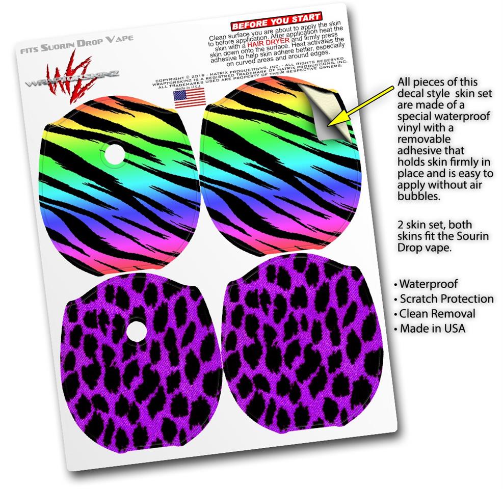 Skin Decal Wrap 2 Pack compatible with Suorin Drop Tiger Rainbow VAPE NOT INCLUDED