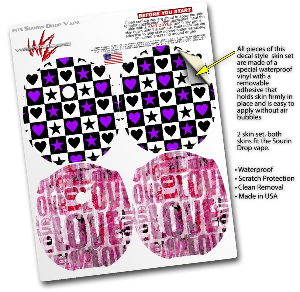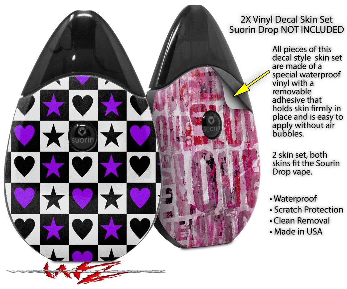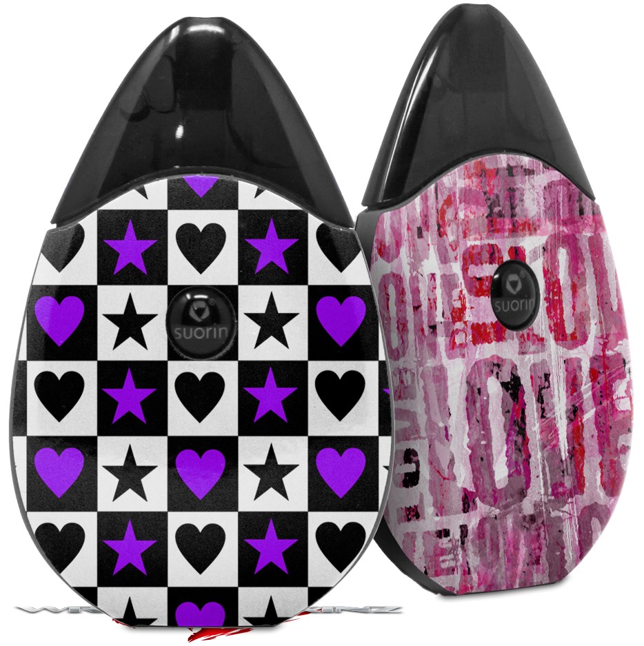 Skin Decal Wrap 2 Pack compatible with Suorin Drop Purple Hearts And Stars VAPE NOT INCLUDED
