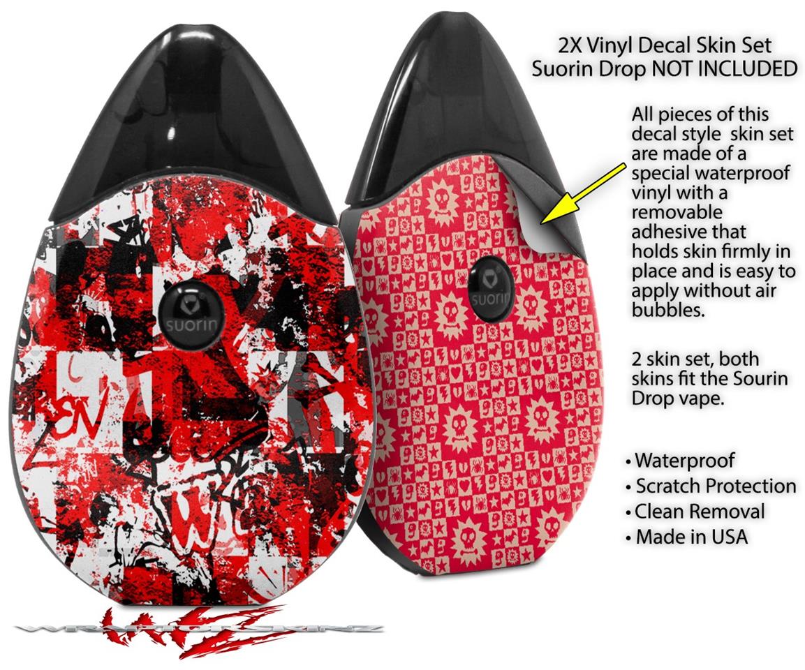 Skin Decal Wrap 2 Pack compatible with Suorin Drop Red Graffiti VAPE NOT INCLUDED