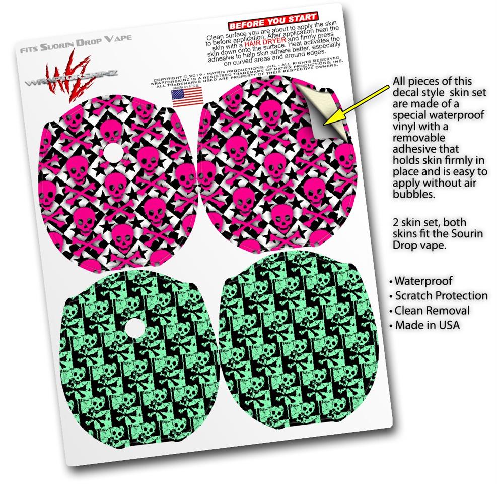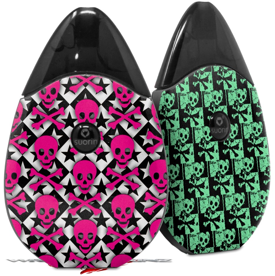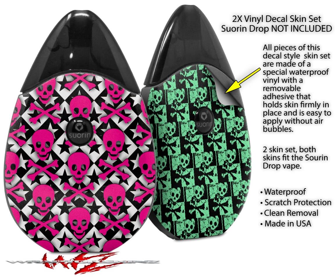 Skin Decal Wrap 2 Pack compatible with Suorin Drop Pink Skulls and Stars VAPE NOT INCLUDED