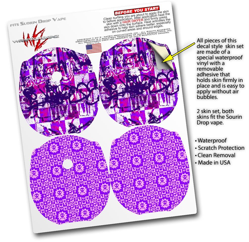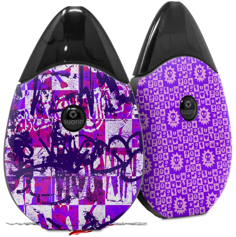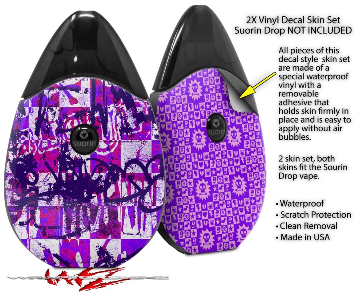 Skin Decal Wrap 2 Pack compatible with Suorin Drop Purple Checker Graffiti VAPE NOT INCLUDED