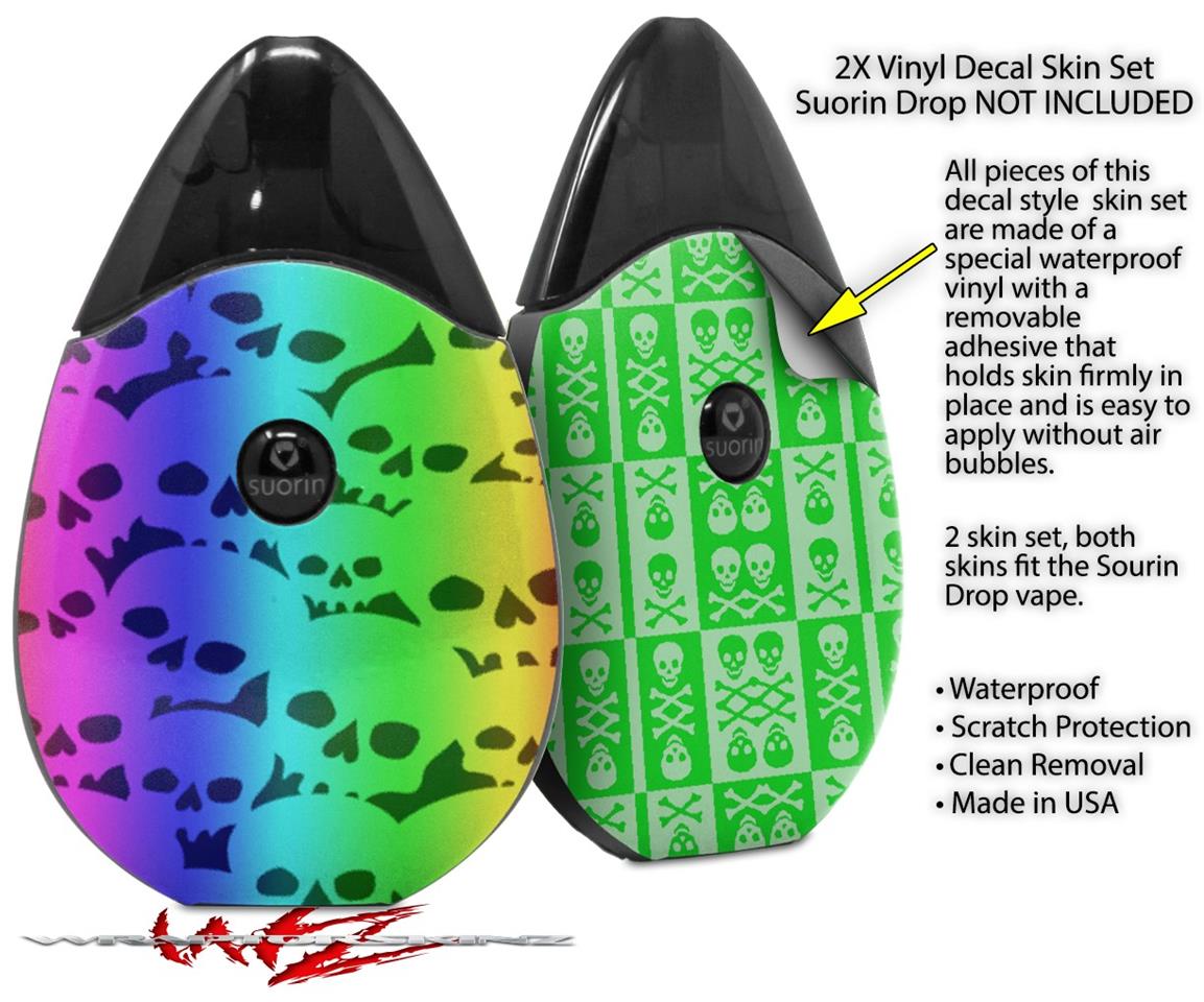 Skin Decal Wrap 2 Pack compatible with Suorin Drop Rainbow Skull Collection VAPE NOT INCLUDED