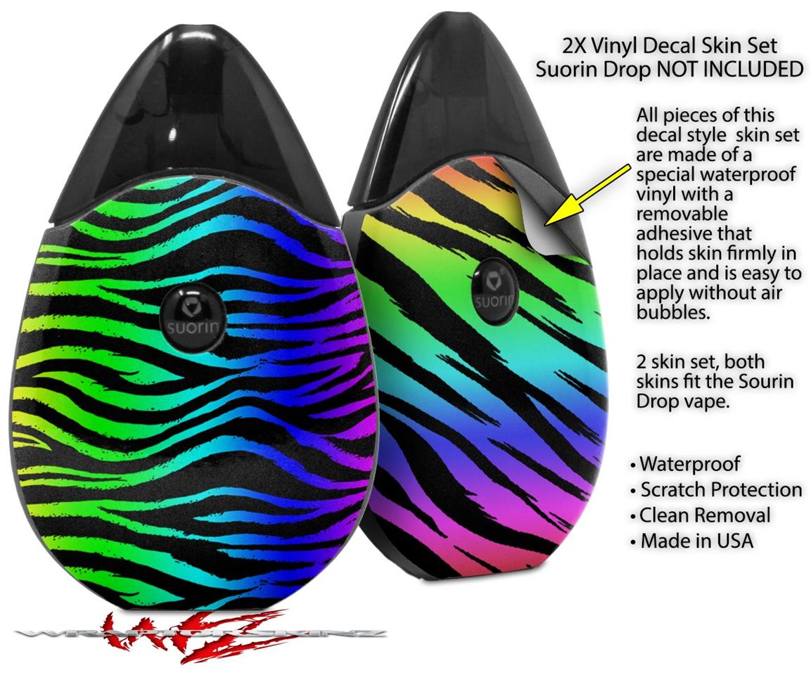 Skin Decal Wrap 2 Pack compatible with Suorin Drop Rainbow Zebra VAPE NOT INCLUDED