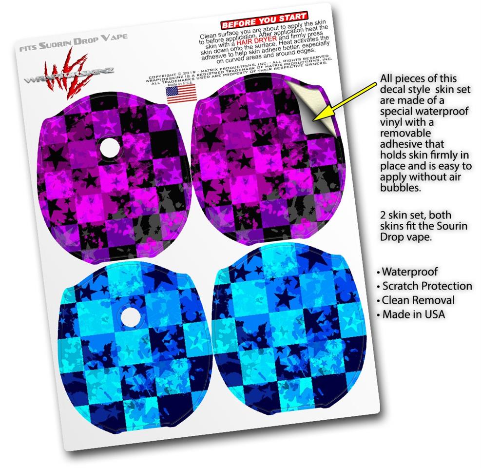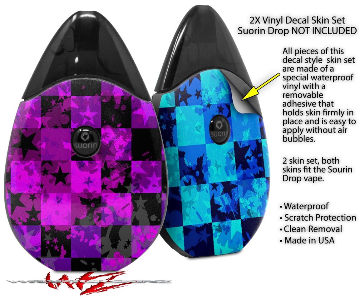 Skin Decal Wrap 2 Pack compatible with Suorin Drop Purple Star Checkerboard VAPE NOT INCLUDED