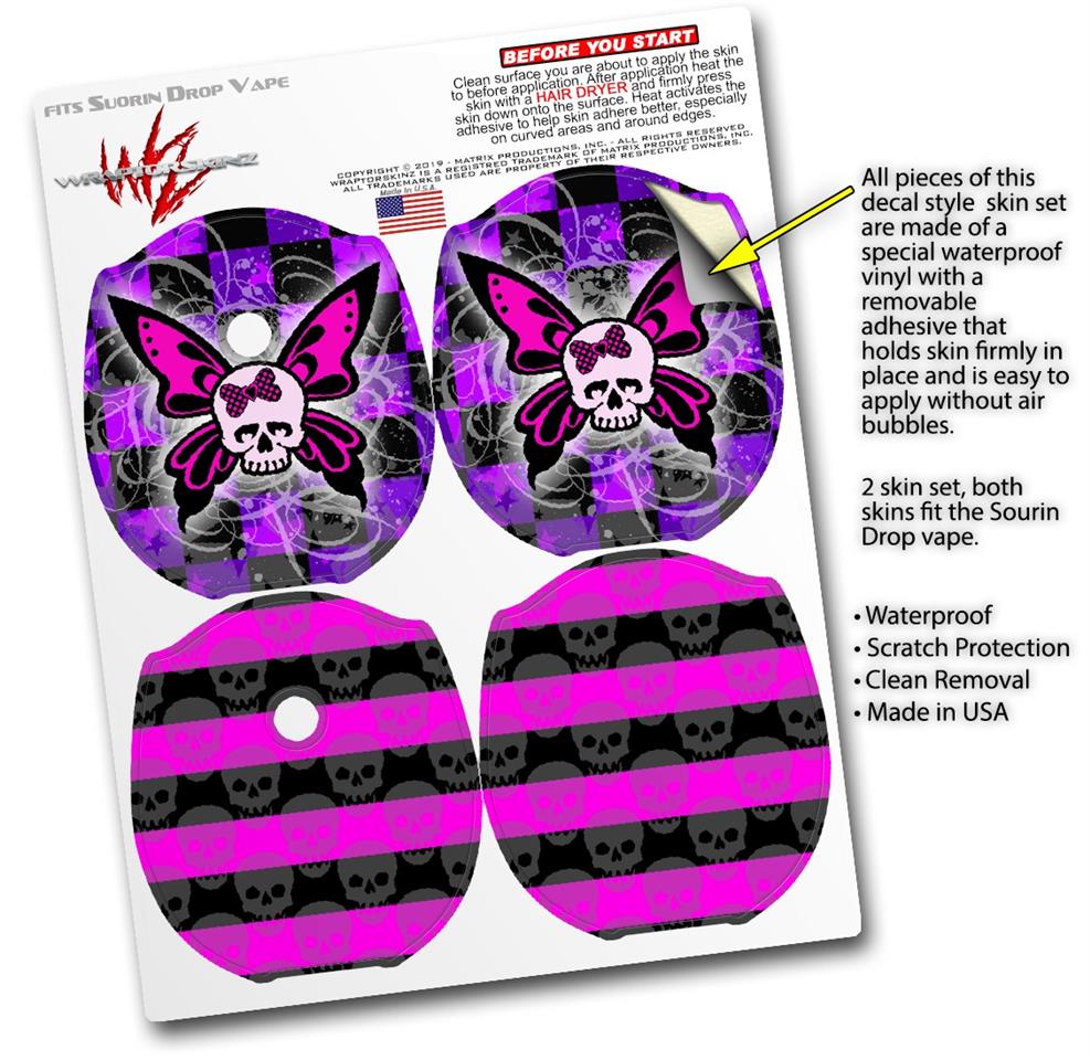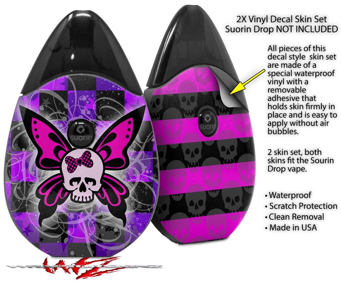 Skin Decal Wrap 2 Pack compatible with Suorin Drop Butterfly Skull VAPE NOT INCLUDED