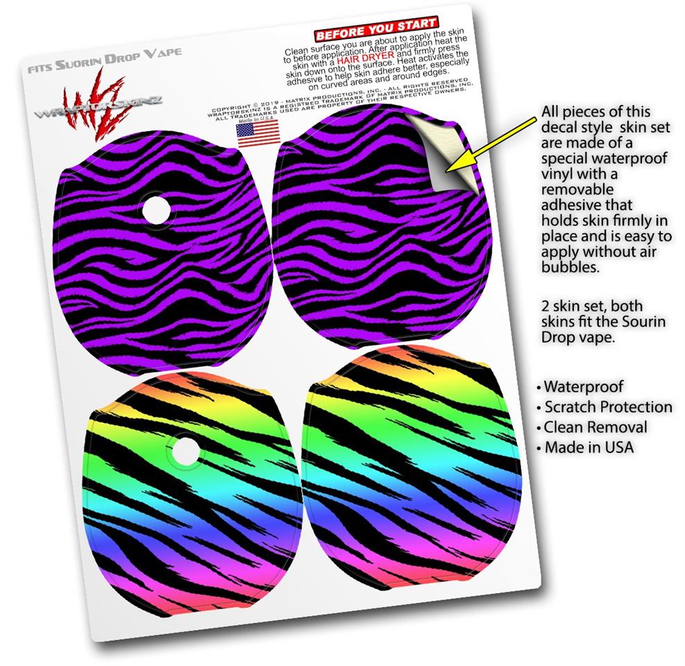 Skin Decal Wrap 2 Pack compatible with Suorin Drop Purple Zebra VAPE NOT INCLUDED
