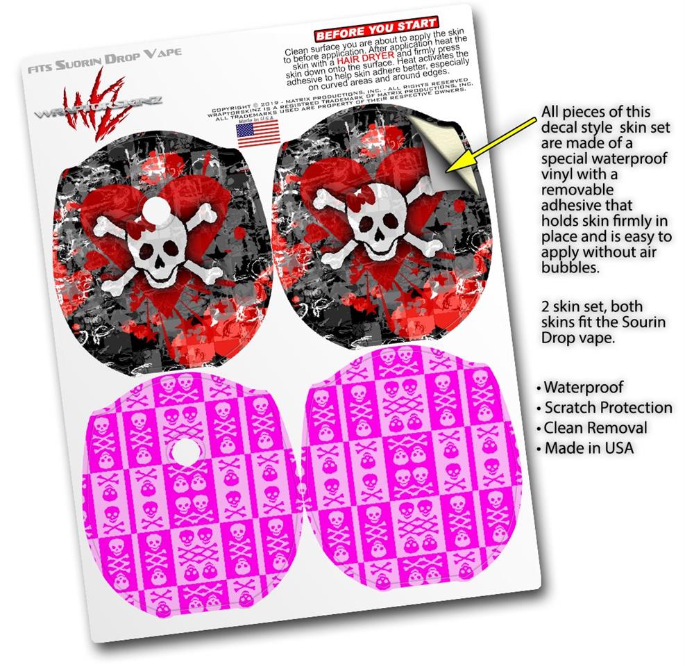 Skin Decal Wrap 2 Pack compatible with Suorin Drop Emo Skull Bones VAPE NOT INCLUDED