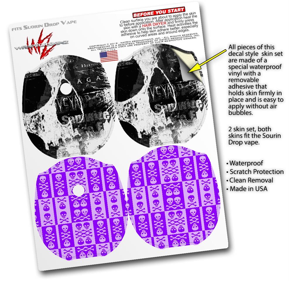 Skin Decal Wrap 2 Pack compatible with Suorin Drop Urban Skull VAPE NOT INCLUDED