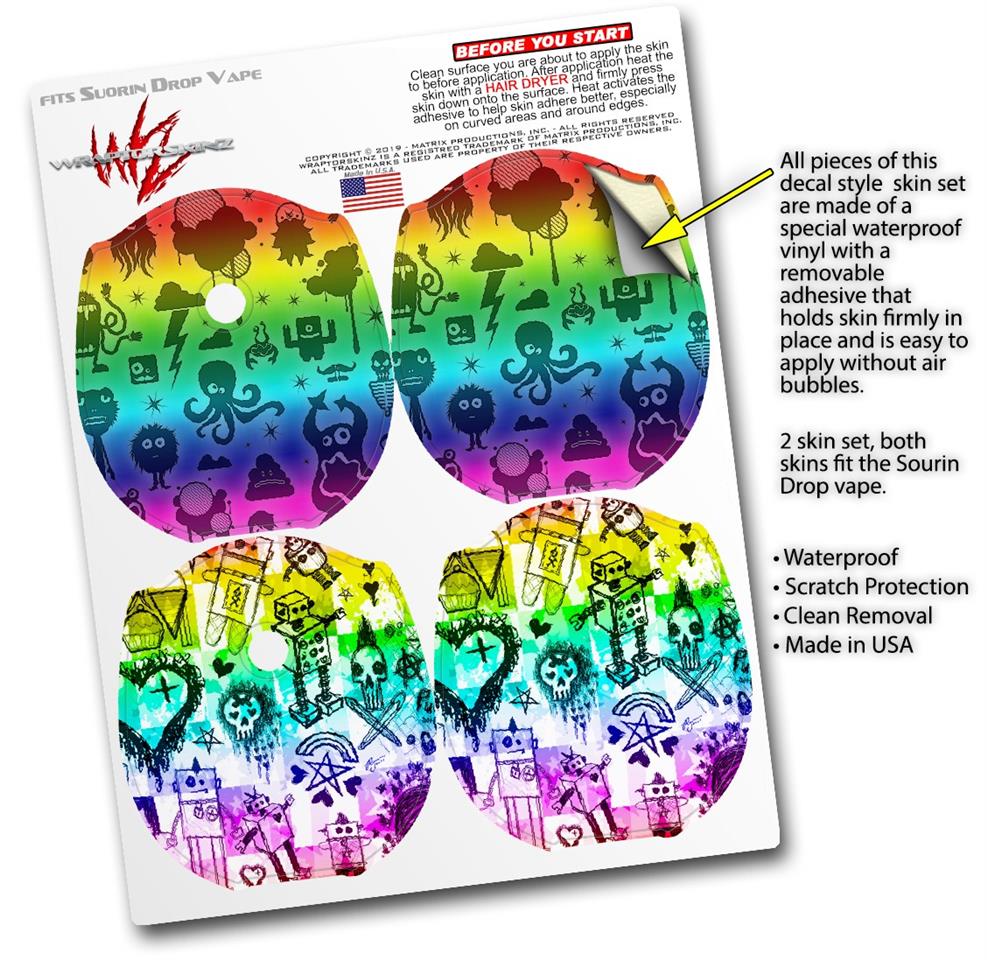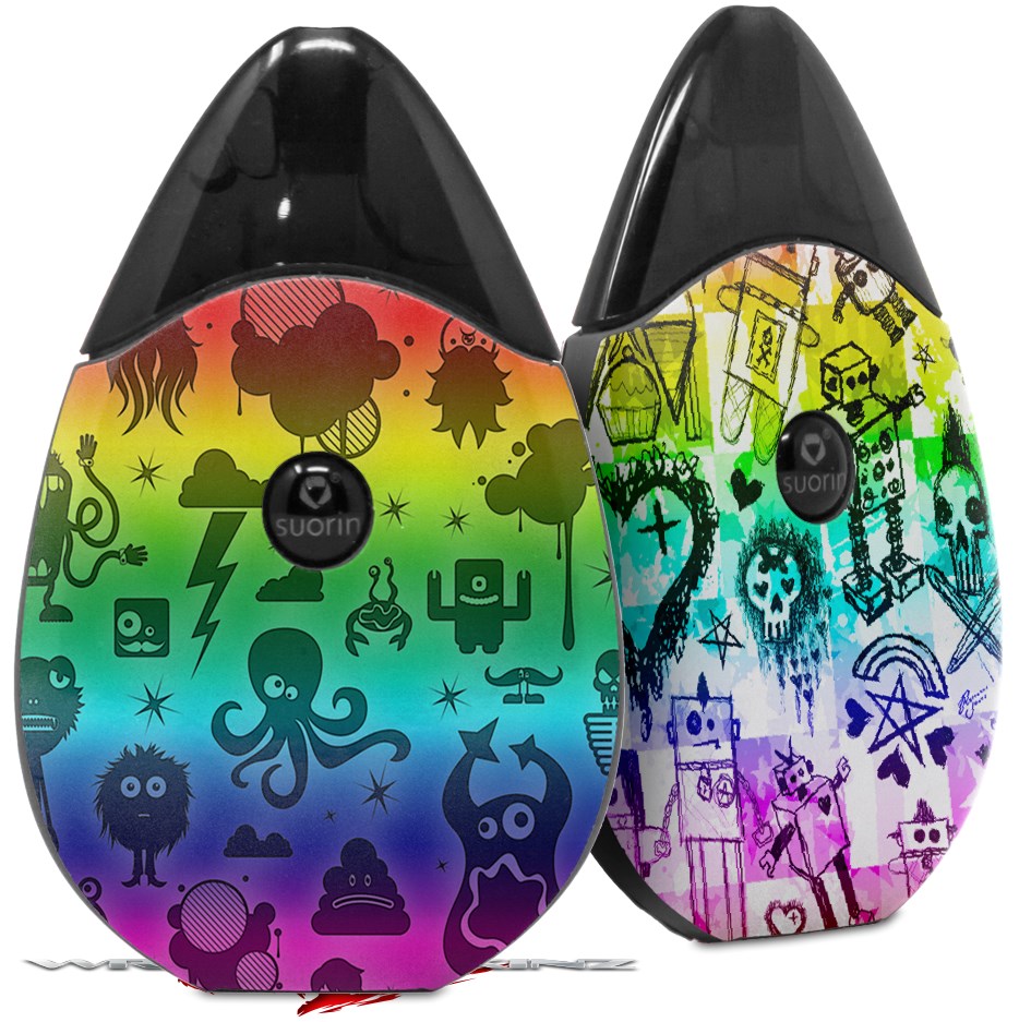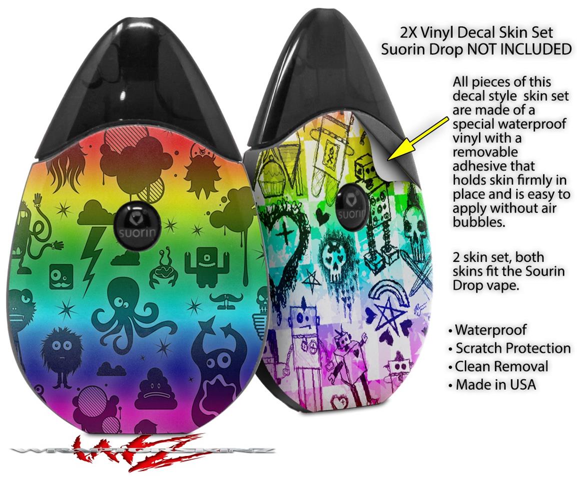 Skin Decal Wrap 2 Pack compatible with Suorin Drop Cute Rainbow Monsters VAPE NOT INCLUDED