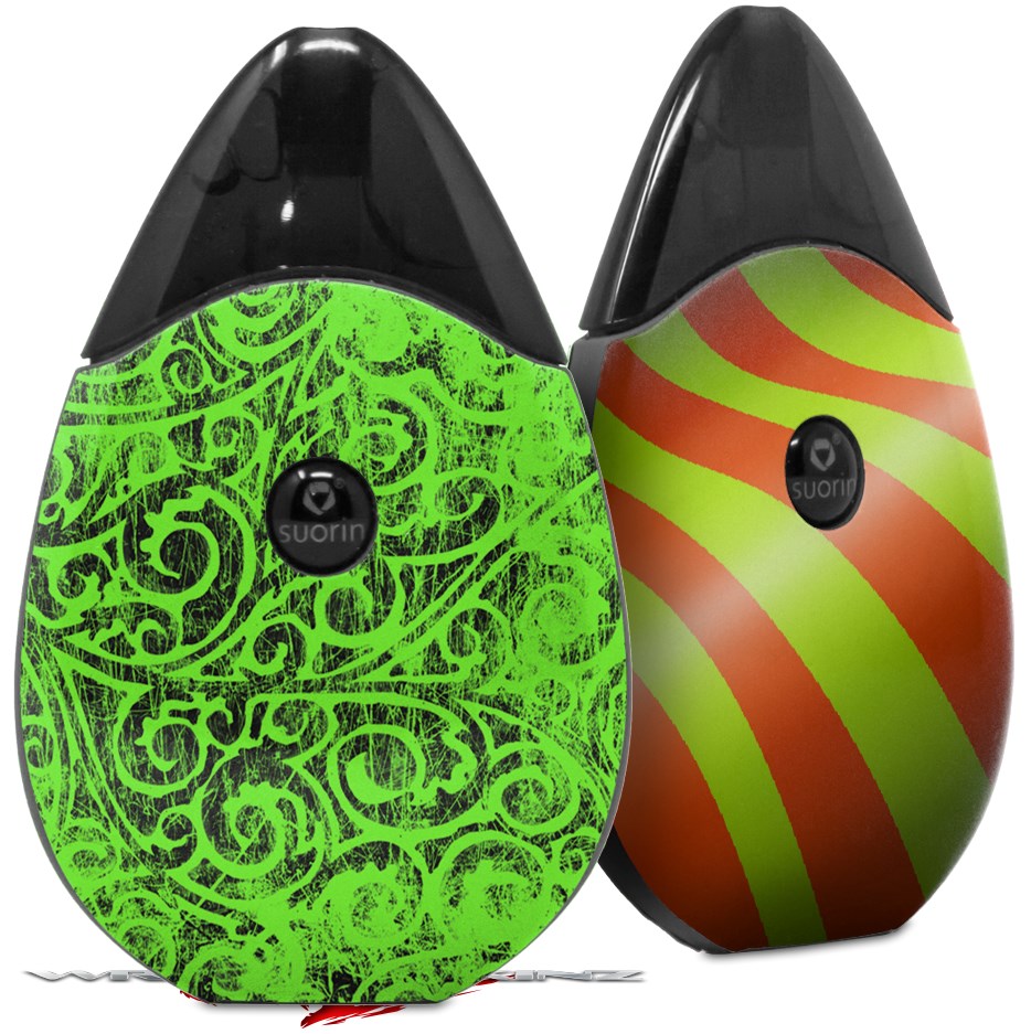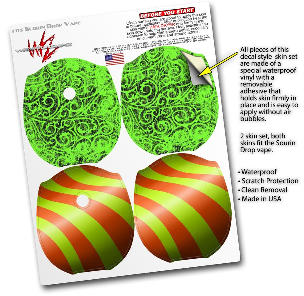 Skin Decal Wrap 2 Pack compatible with Suorin Drop Folder Doodles Neon Green VAPE NOT INCLUDED