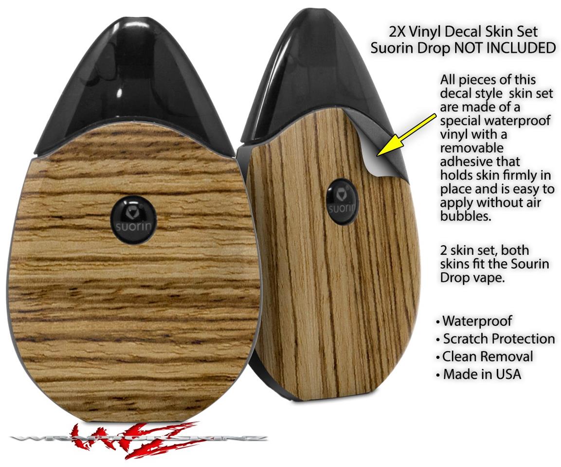 Skin Decal Wrap 2 Pack compatible with Suorin Drop Exotic Wood Zebra Wood VAPE NOT INCLUDED