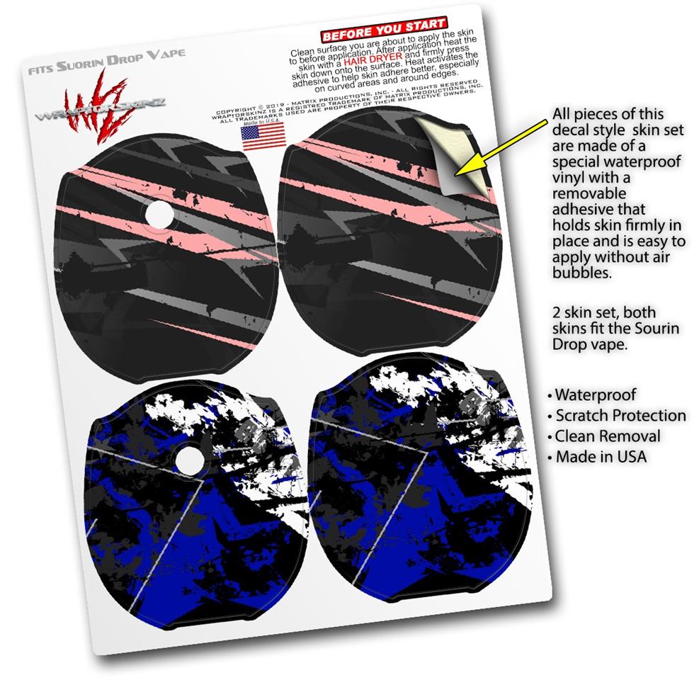 WraptorSkinz® skin wraps compatible with Suorin Drop Vape are printed using superb photo quality designs and vibrant colors printed with special fade resistant inks that last even in direct sun for years. WraptorSkinz are a composite of two layers of commercial grade materials. The bottom layer is a soft, flexible vinyl with a special removable adhesive that is easily positioned, applied without air bubbles. Next, we print the bottom layer with UV protected, fade resistant inks that deliver superb photo quality designs in vibrant colors. Finally, we bond a professional grade laminate over the entire skin adding a glossy protective finish. This product is not affiliated with or endorsed by Suorin.