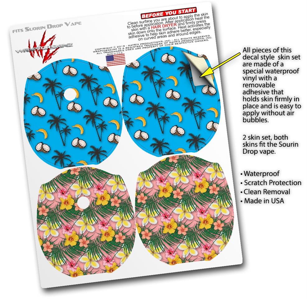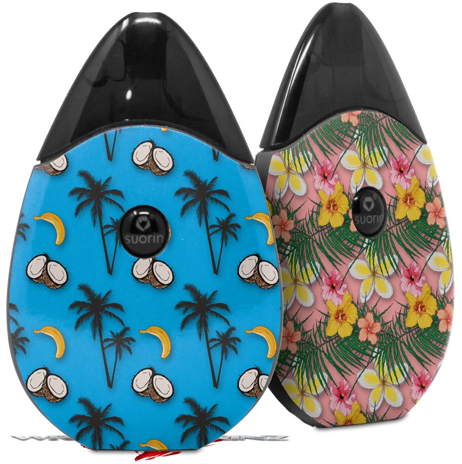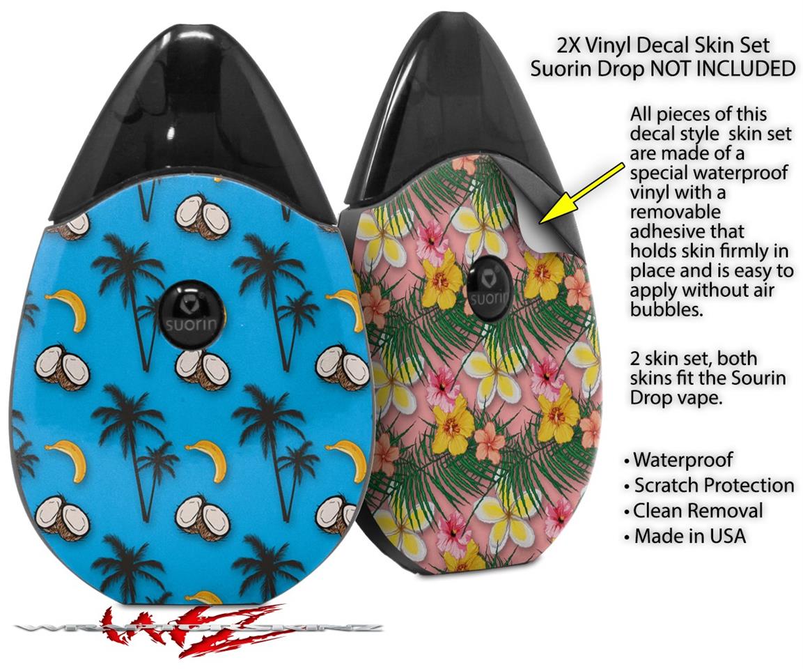 Skin Decal Wrap 2 Pack compatible with Suorin Drop Coconuts Palm Trees and Bananas Blue Medium VAPE NOT INCLUDED