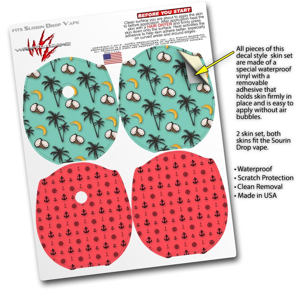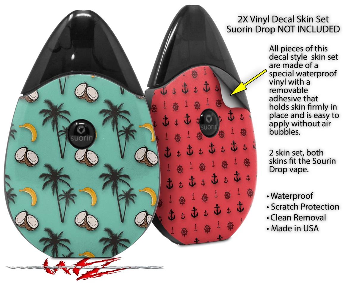 Skin Decal Wrap 2 Pack compatible with Suorin Drop Coconuts Palm Trees and Bananas Seafoam Green VAPE NOT INCLUDED