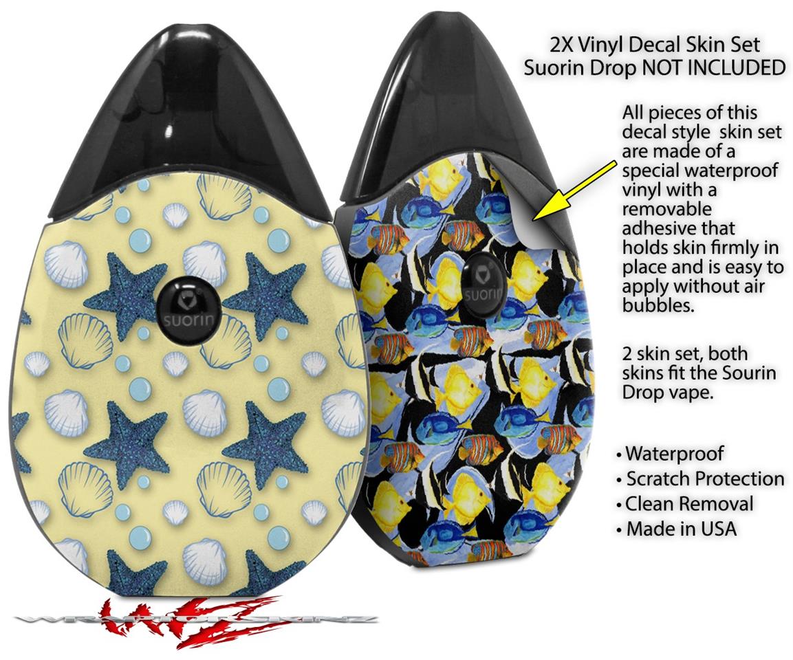 Skin Decal Wrap 2 Pack compatible with Suorin Drop Starfish and Sea Shells Yellow Sunshine VAPE NOT INCLUDED