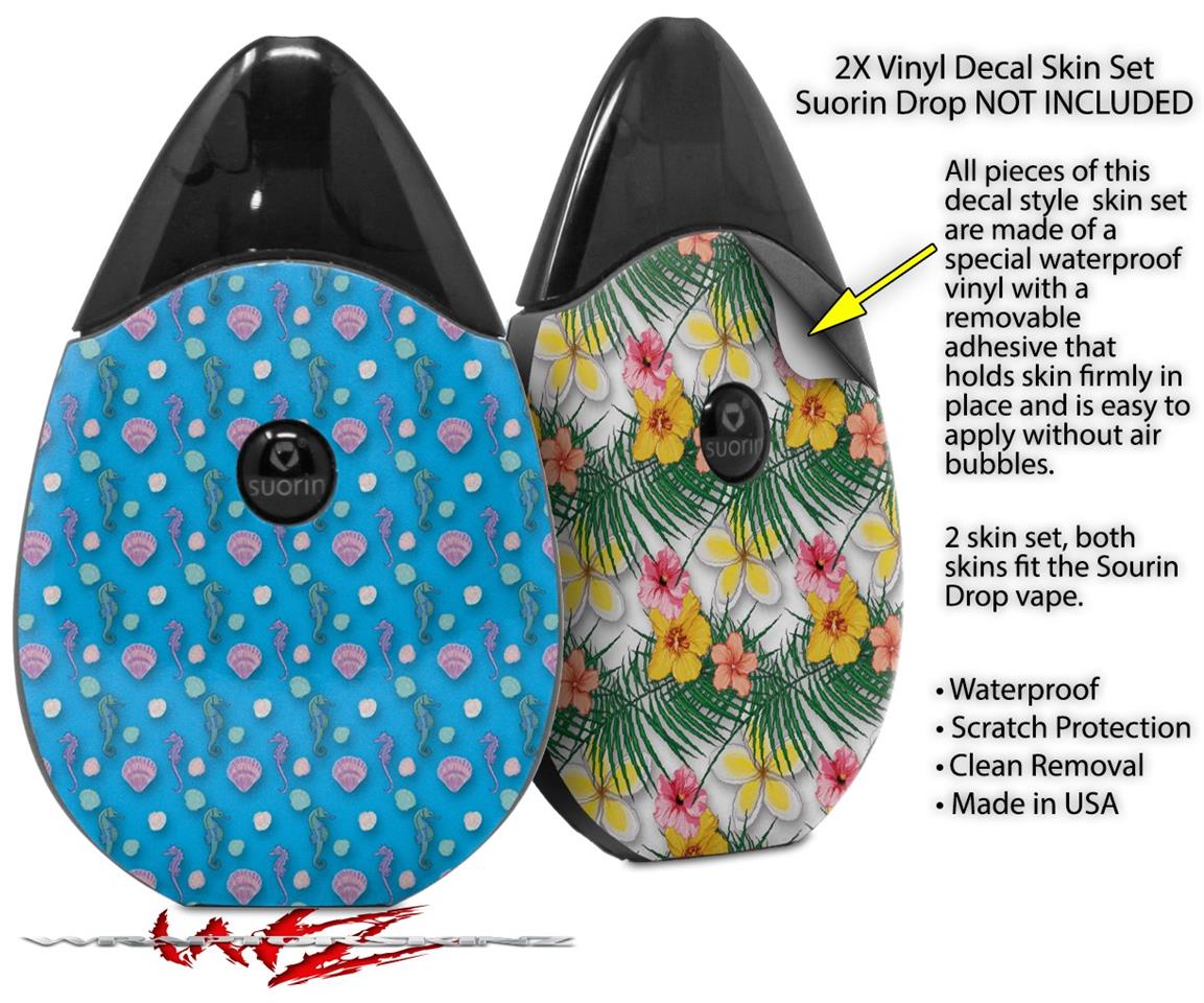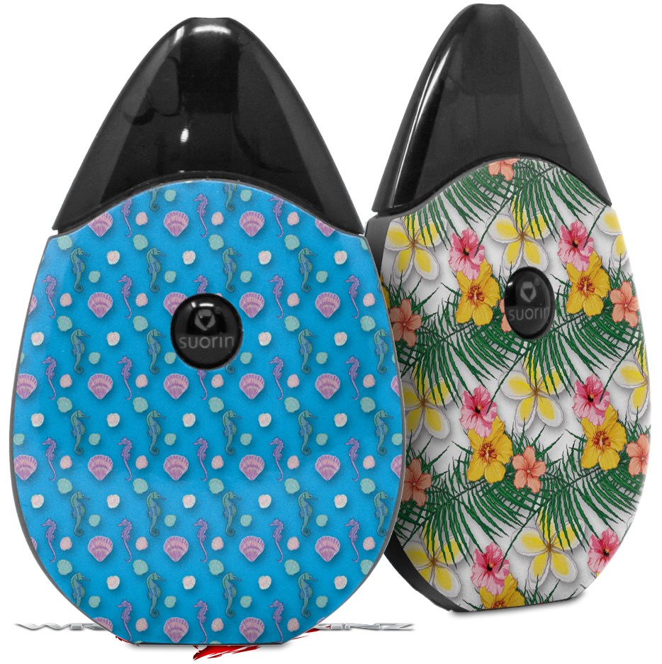 Skin Decal Wrap 2 Pack compatible with Suorin Drop Seahorses and Shells Blue Medium VAPE NOT INCLUDED