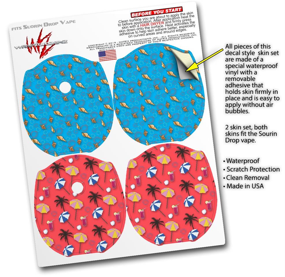 Skin Decal Wrap 2 Pack compatible with Suorin Drop Sea Shells 02 Blue Medium VAPE NOT INCLUDED