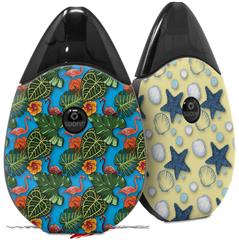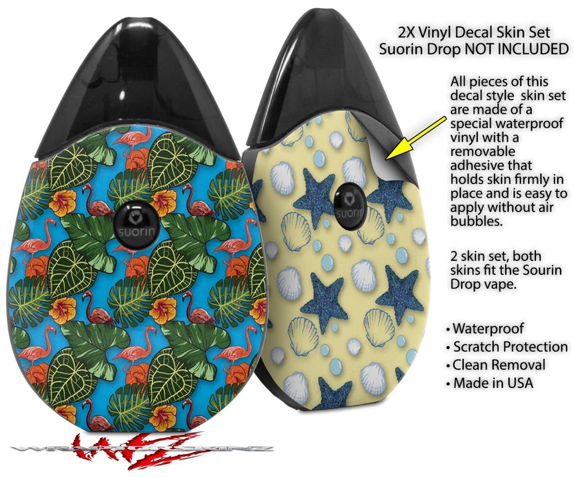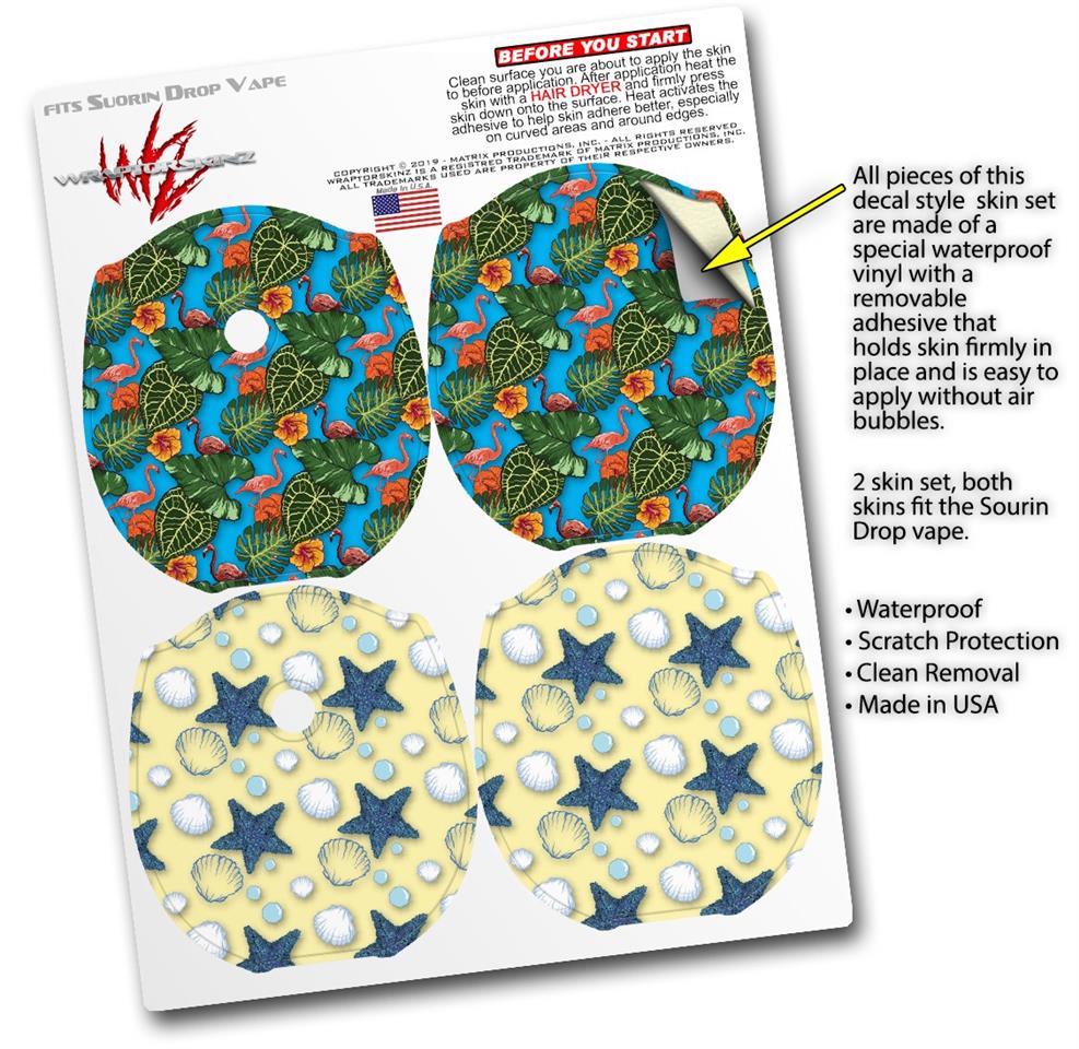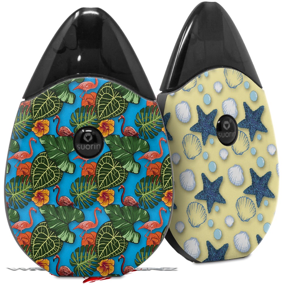 Skin Decal Wrap 2 Pack compatible with Suorin Drop Famingos and Flowers Blue Medium VAPE NOT INCLUDED