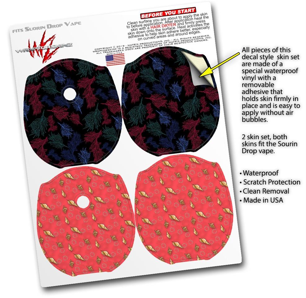 Skin Decal Wrap 2 Pack compatible with Suorin Drop Floating Coral Black VAPE NOT INCLUDED