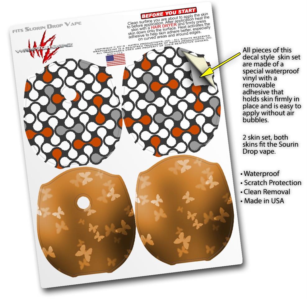 Skin Decal Wrap 2 Pack compatible with Suorin Drop Locknodes 05 Burnt Orange VAPE NOT INCLUDED