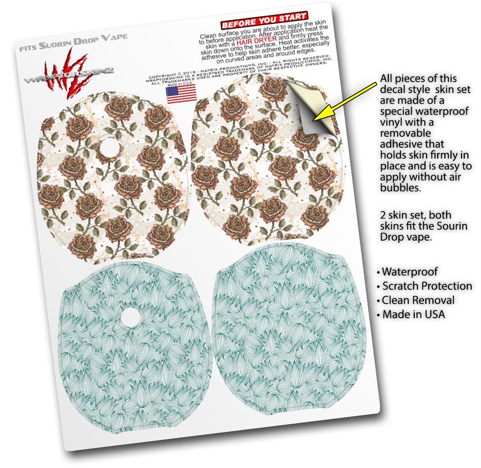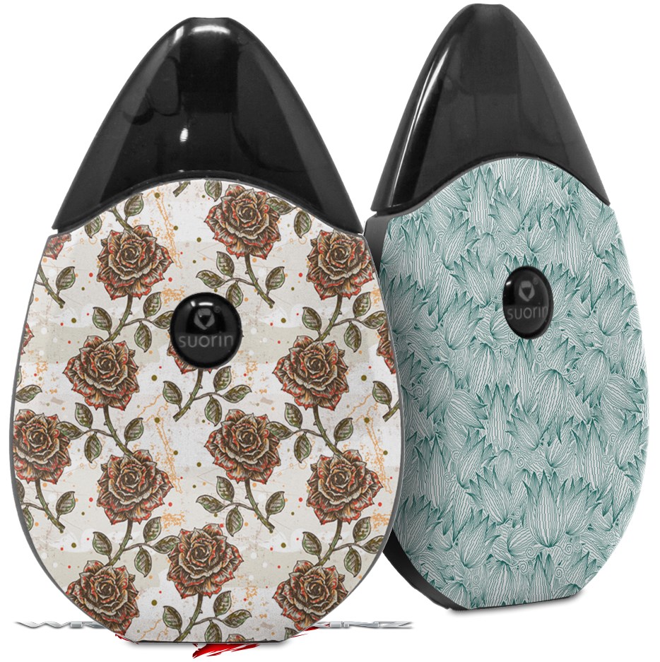 Skin Decal Wrap 2 Pack compatible with Suorin Drop Flowers Pattern Roses 20 VAPE NOT INCLUDED