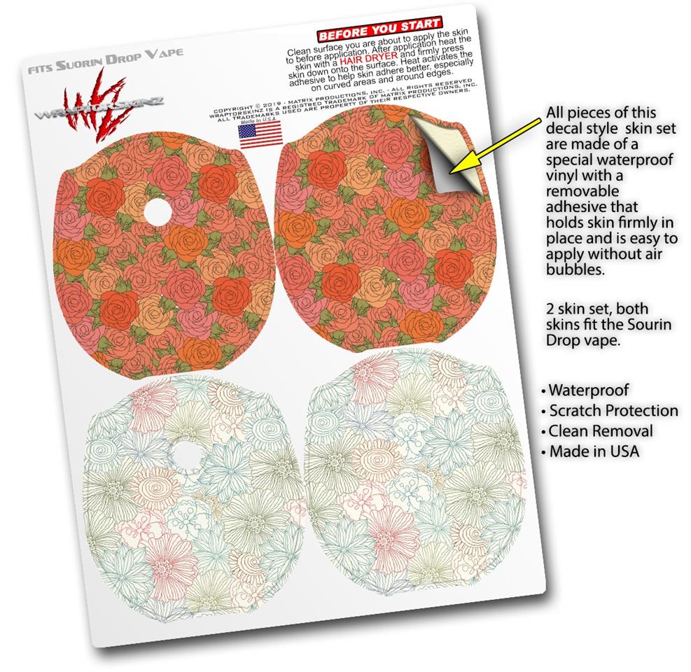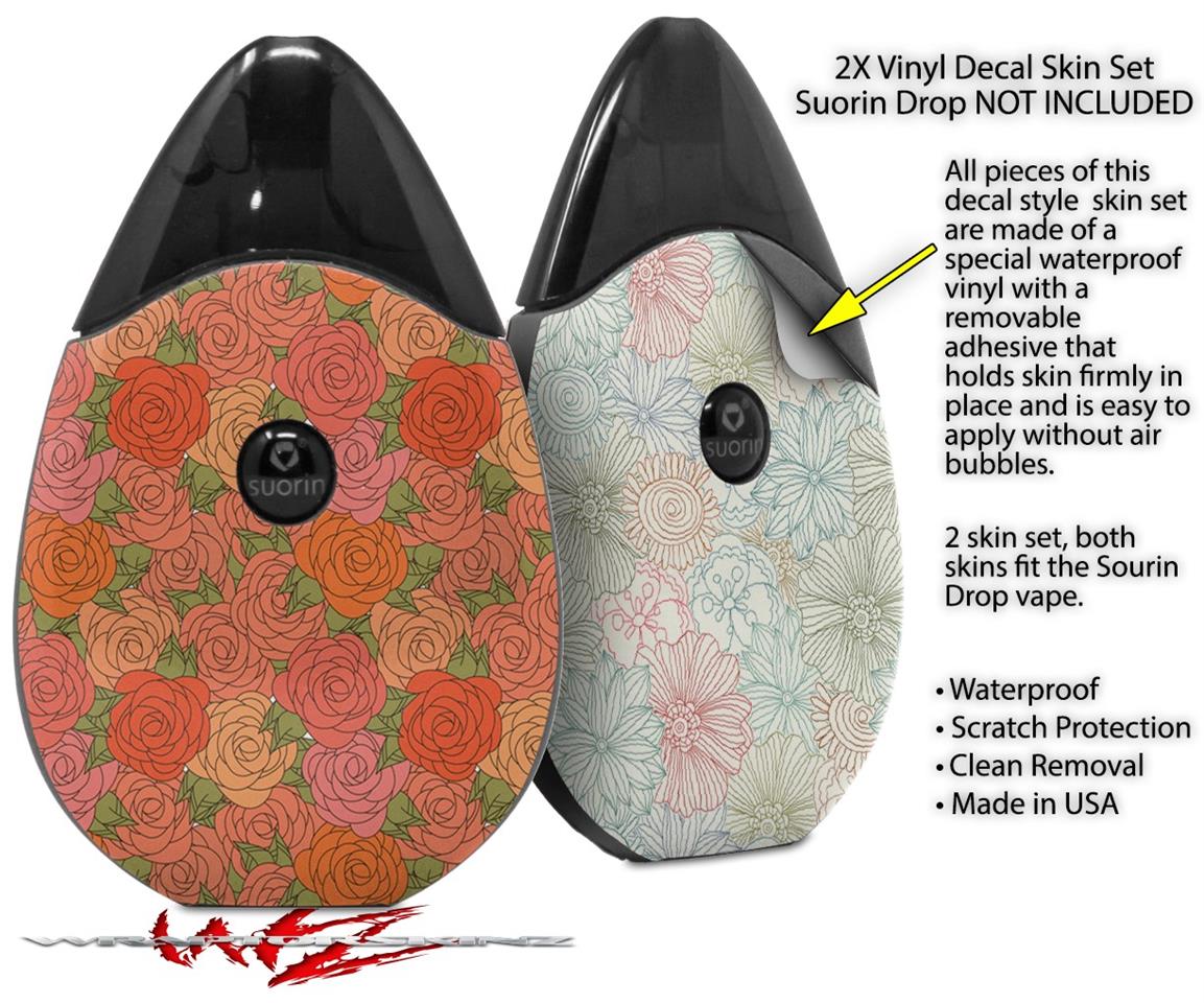 Skin Decal Wrap 2 Pack compatible with Suorin Drop Flowers Pattern Roses 06 VAPE NOT INCLUDED