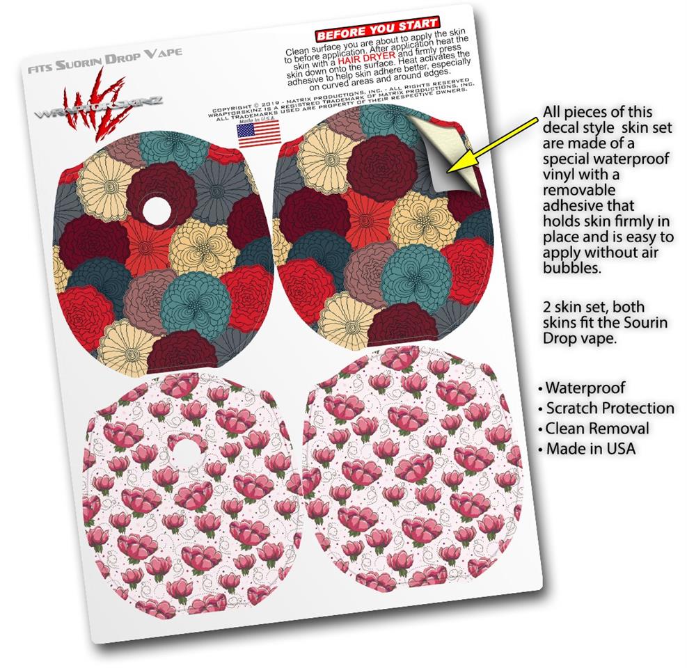 Skin Decal Wrap 2 Pack compatible with Suorin Drop Flowers Pattern 04 VAPE NOT INCLUDED