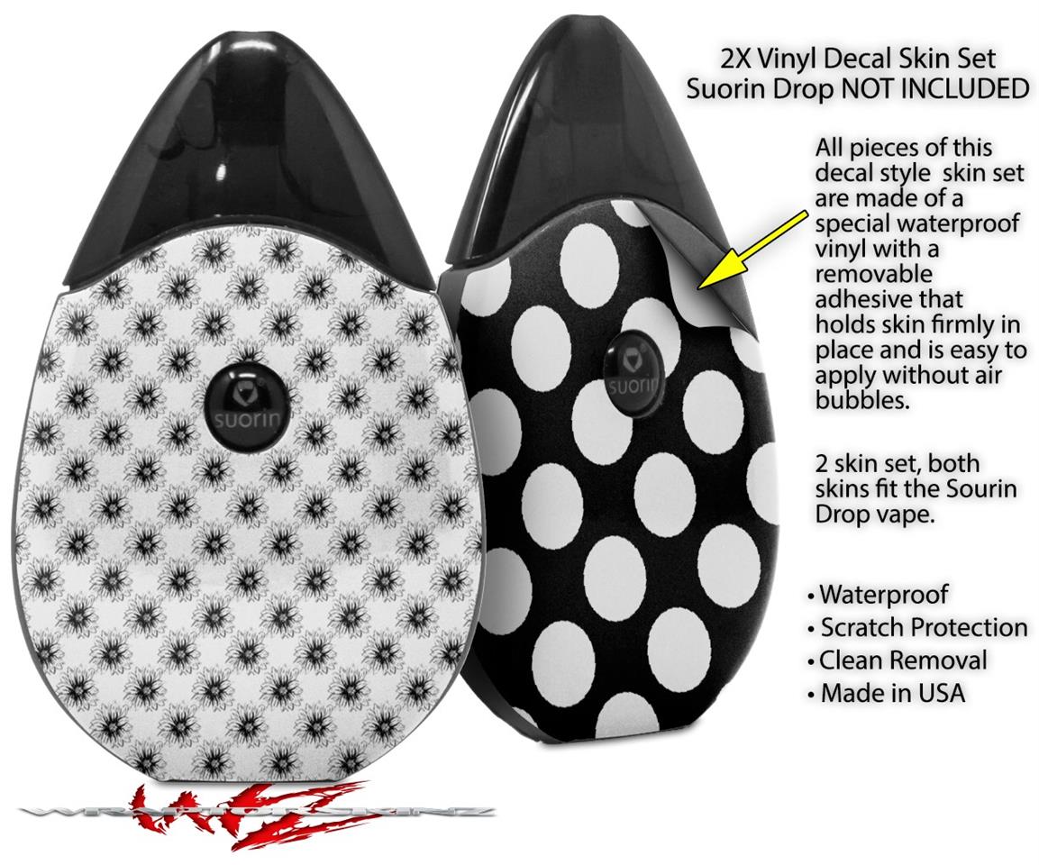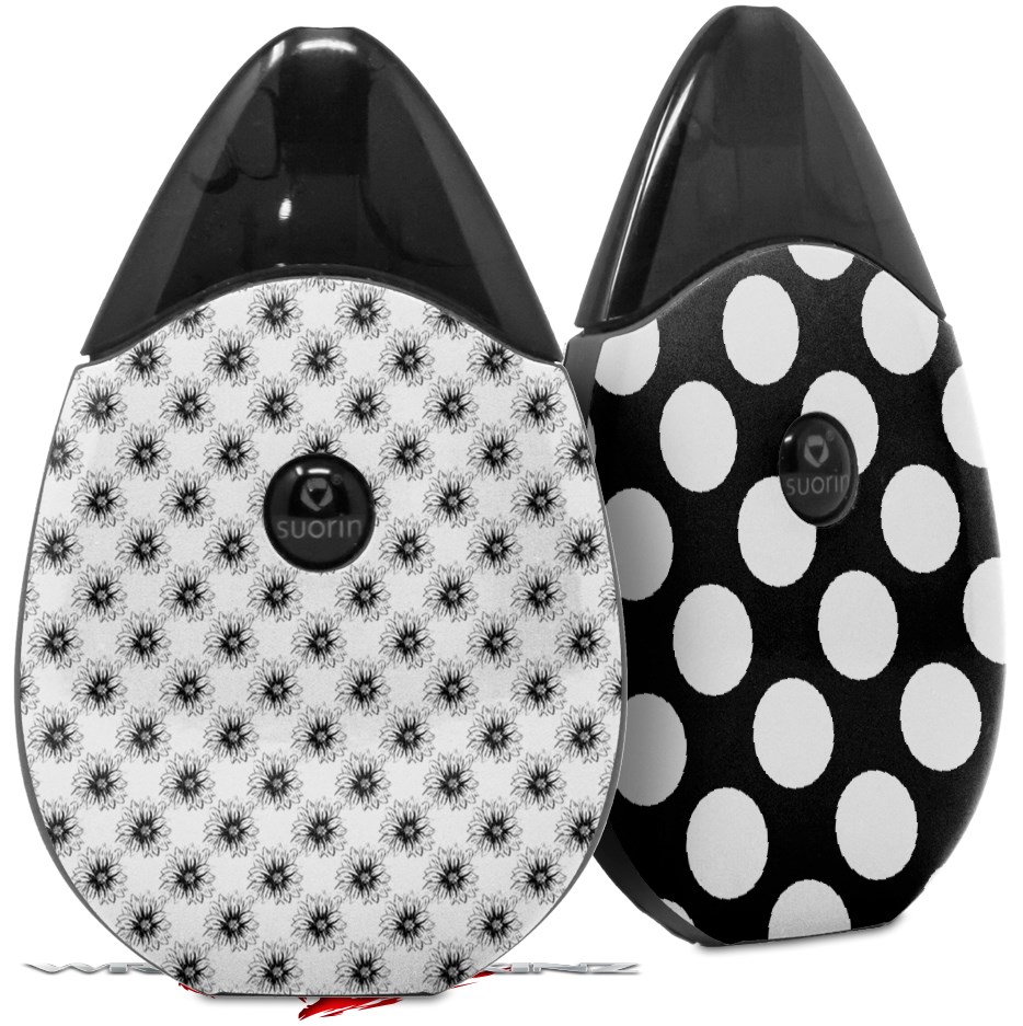 Skin Decal Wrap 2 Pack compatible with Suorin Drop Kearas Daisies Black on White VAPE NOT INCLUDED