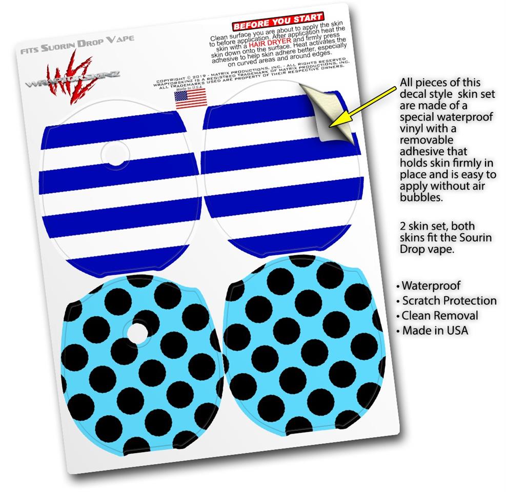 Skin Decal Wrap 2 Pack compatible with Suorin Drop Psycho Stripes Blue and White VAPE NOT INCLUDED