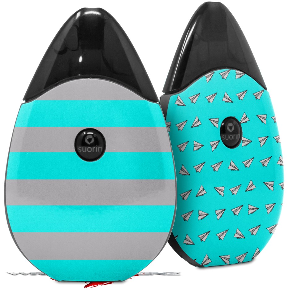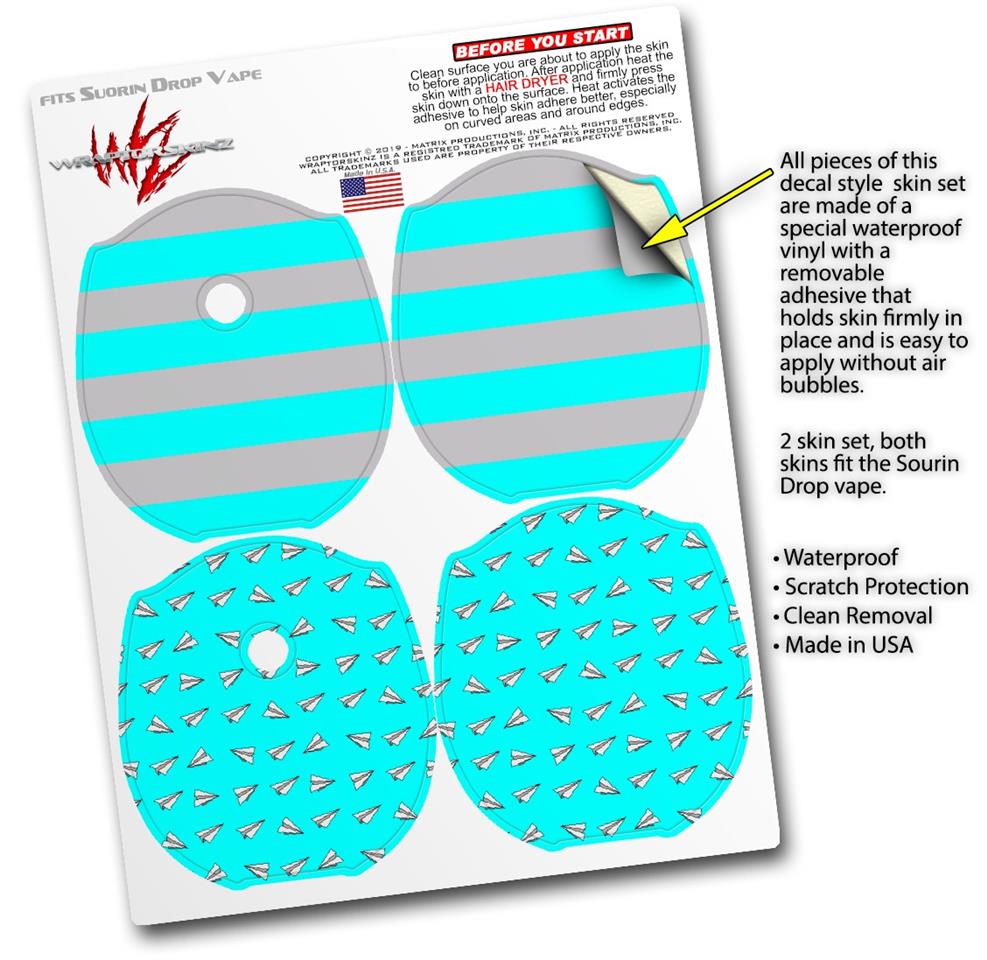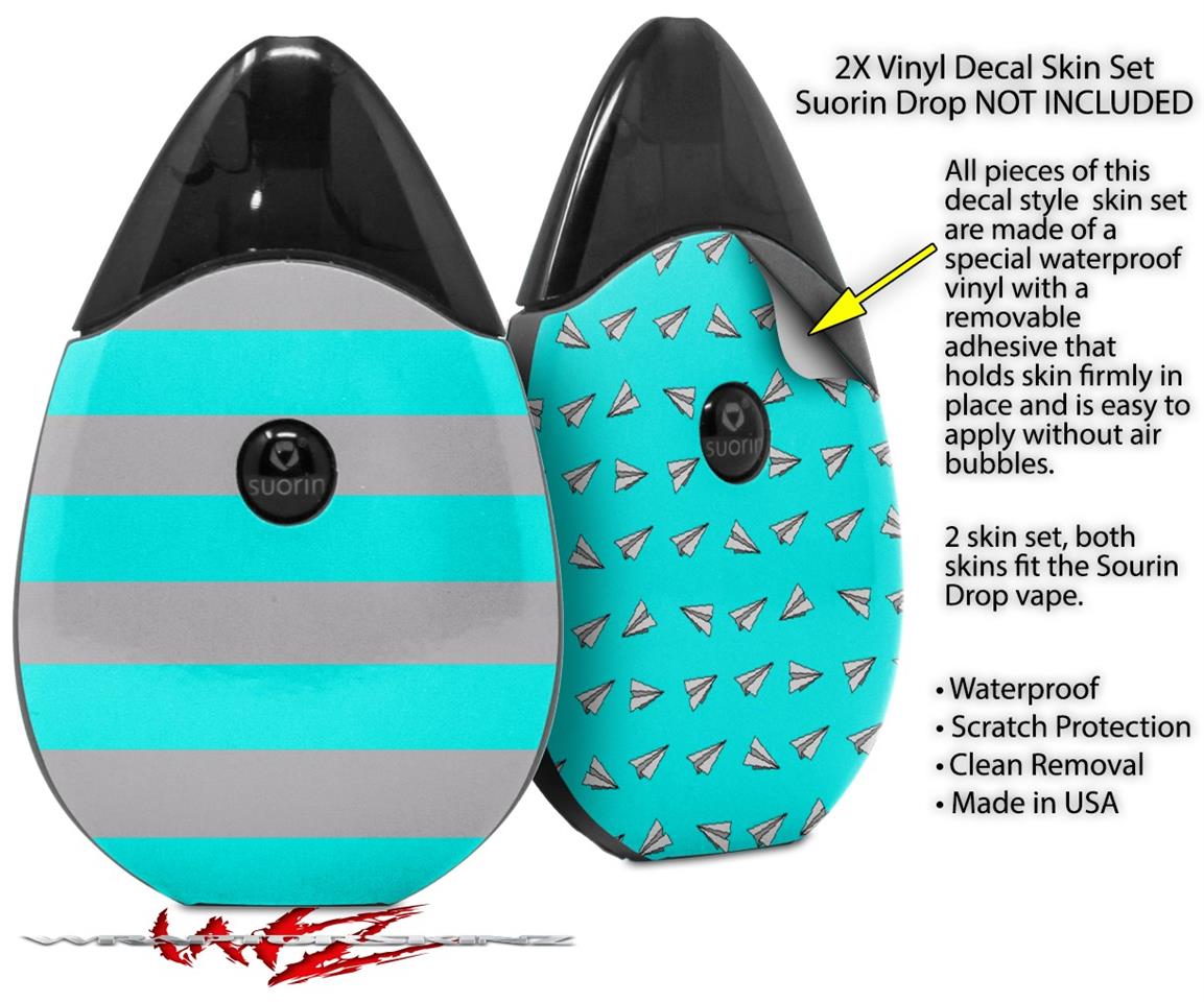 Skin Decal Wrap 2 Pack compatible with Suorin Drop Psycho Stripes Neon Teal and Gray VAPE NOT INCLUDED