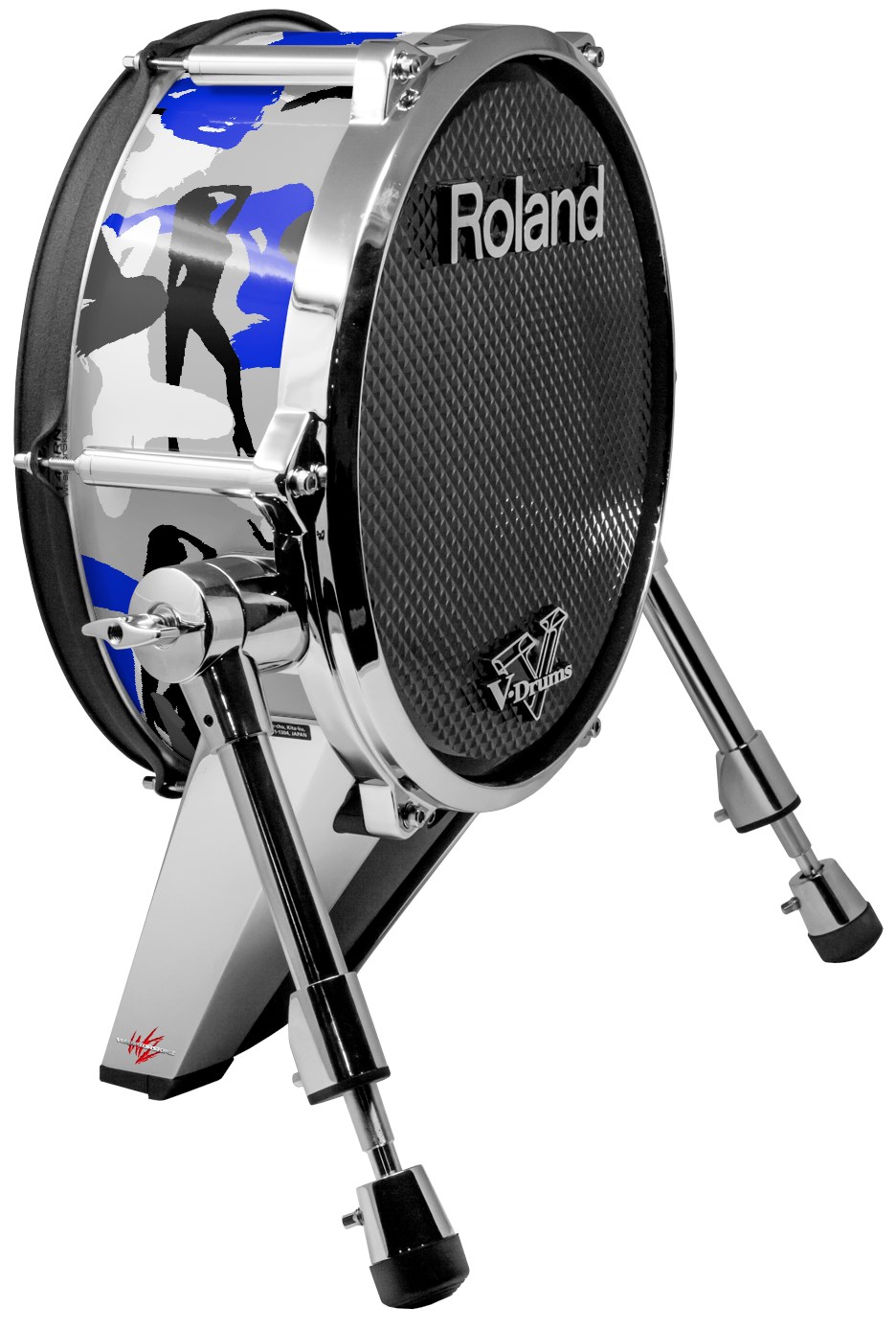 Skin Wrap works with Roland vDrum Shell KD-140 Kick Bass Drum Sexy Girl Silhouette Camo Blue (DRUM NOT INCLUDED)