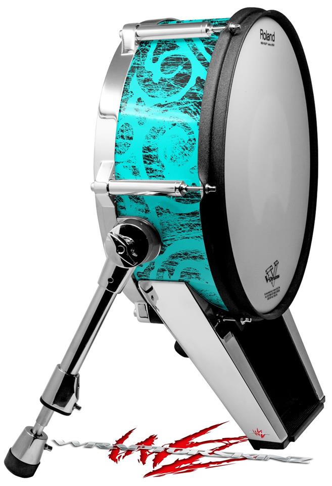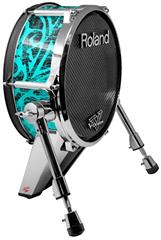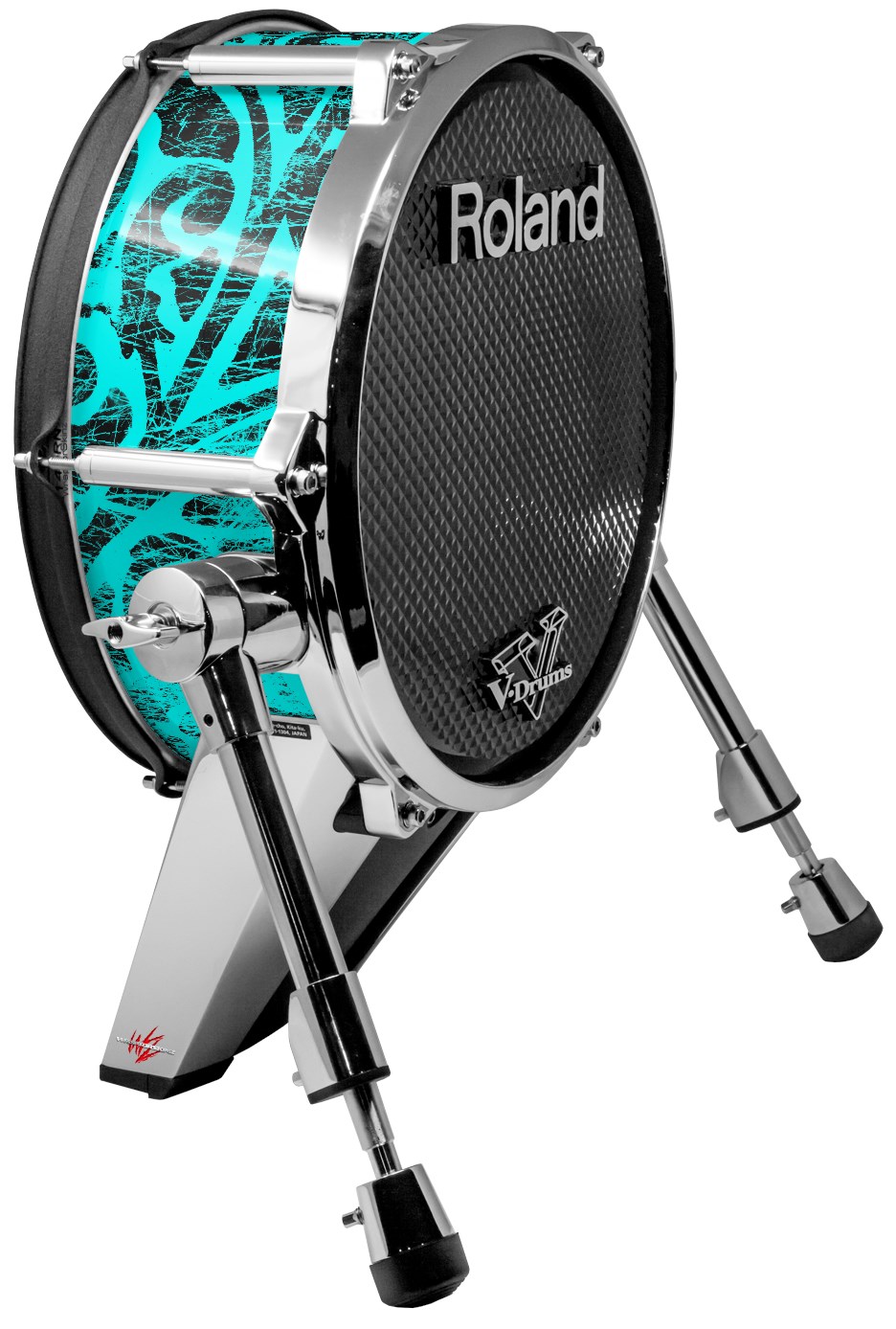 Skin Wrap works with Roland vDrum Shell KD-140 Kick Bass Drum Folder Doodles Neon Teal (DRUM NOT INCLUDED)
