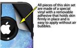 WraptorSkinz® are self adhering vinyl decal style skins and are a great way to add a new look to your protective case. WraptorSkinz® are a composite of two layers of commercial grade materials. The bottom layer is a soft, flexible vinyl with a special removable adhesive that is easily positioned, applied without air bubbles. Next we print the bottom layer with UV protected, fade resistant inks that deliver superb photo quality designs in vibrant colors. Finally we bond a professional grade laminate over the entire skin adding a glossy protective finish.