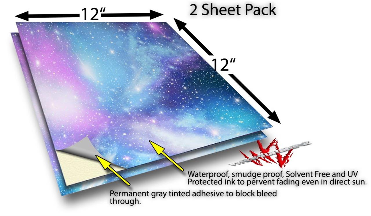 WraptorSkinz® skin vinyl craft sheets are printed using superb photo quality designs and vibrant colors printed with special UV Protected fade resistant inks that last even in direct sun for years.  Unlike other brands our inks are NOT solvent based. WraptorSkinz® are a manufactured from professional grade 3mill vinyl. These sheets are waterproof, the designs will not run or smear even if submerged in water.
