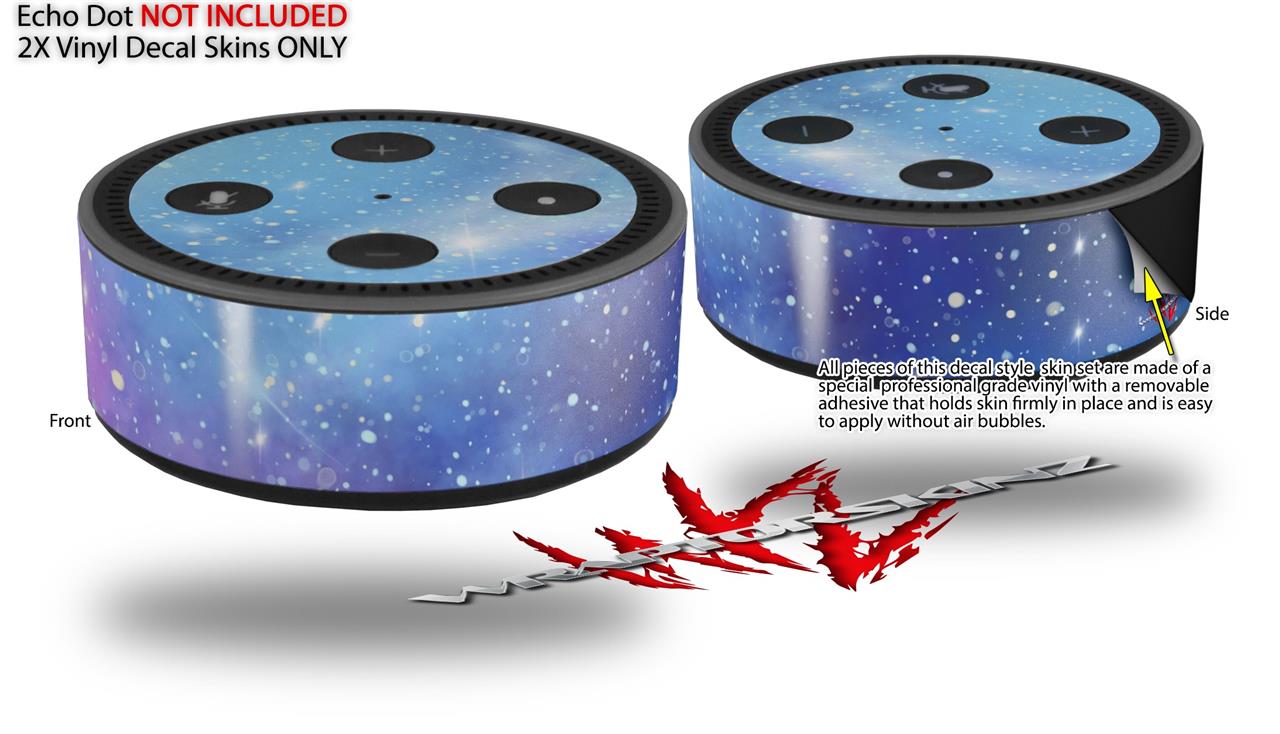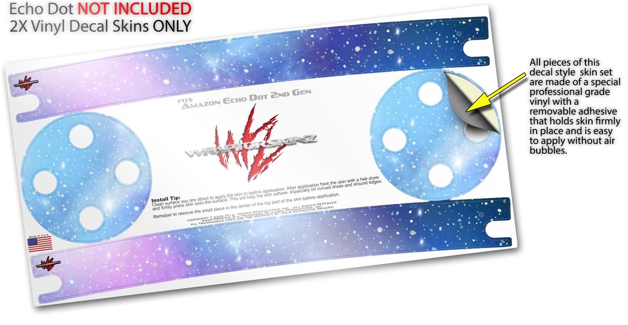 Skin Wrap Decal Set 2 Pack compatible with Amazon Echo Dot 2 Dynamic Blue Galaxy (2nd Generation ONLY - Echo NOT INCLUDED)